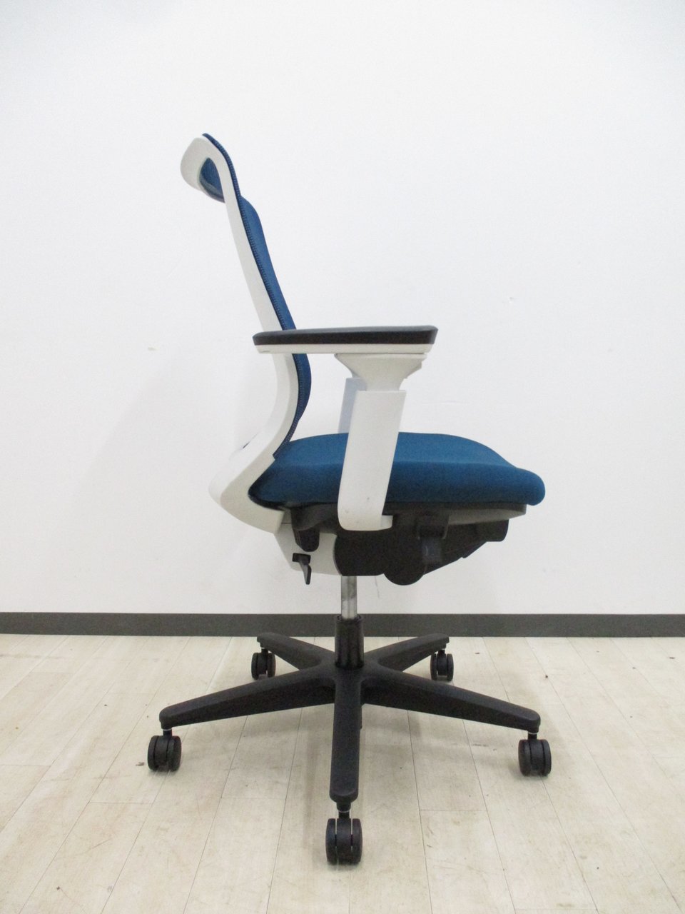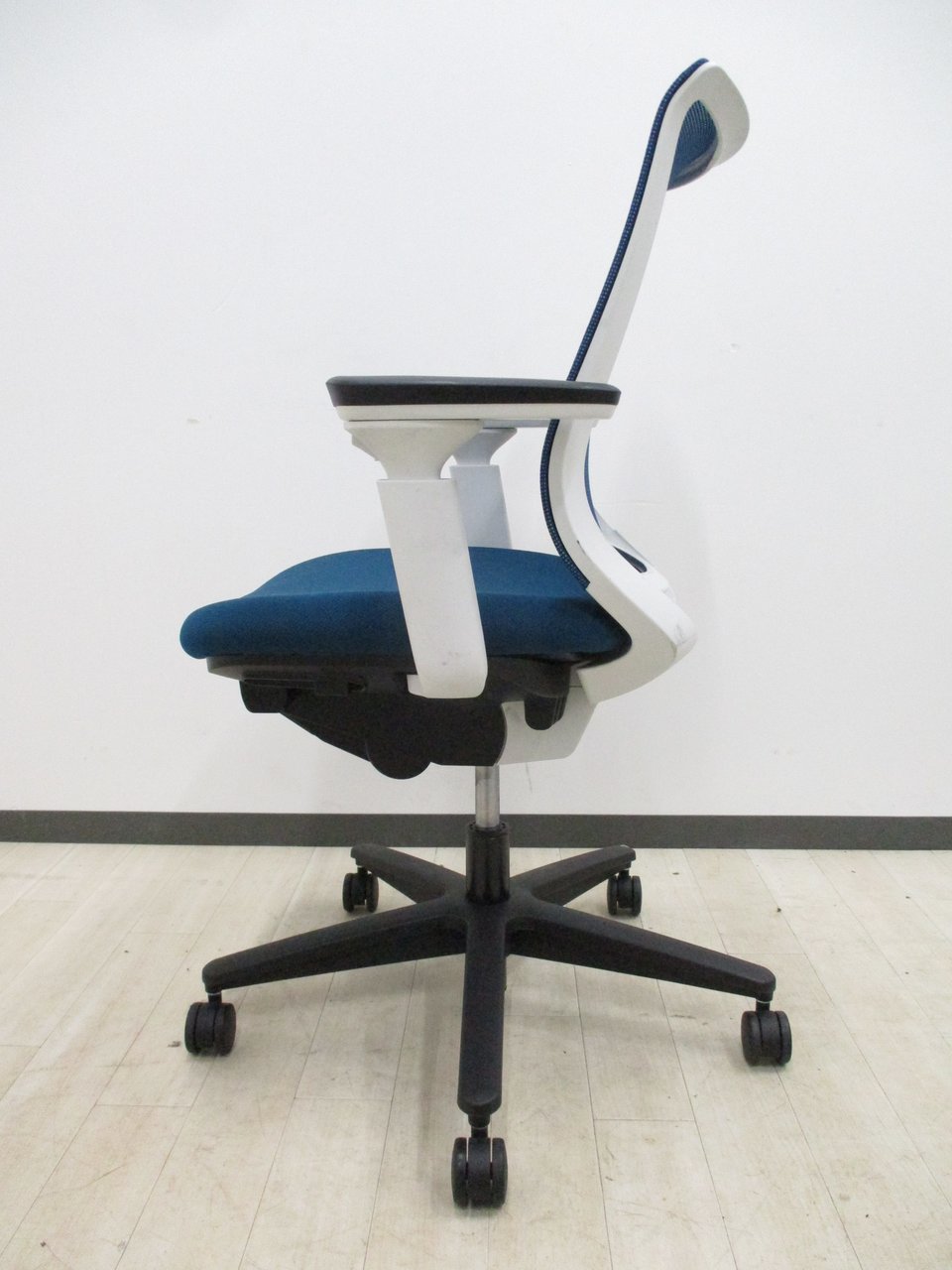 【テレワークにも最適!快適な座り心地と充実機能!】■コクヨ(KOKUYO)製 ミトラ(Mitra)チェア 肘付 ローバック 背面メッシュ ■固定肘・ハンガー付 ■プルシアンブルー×ホワイトシェル×ブラック脚