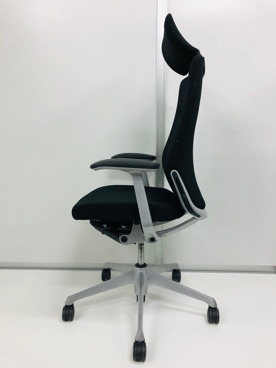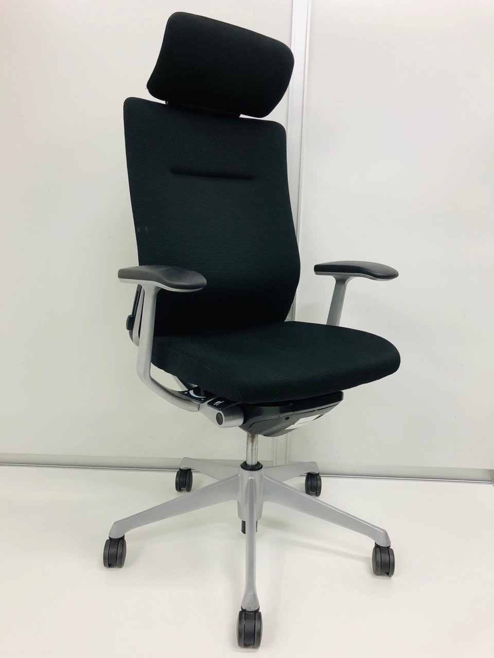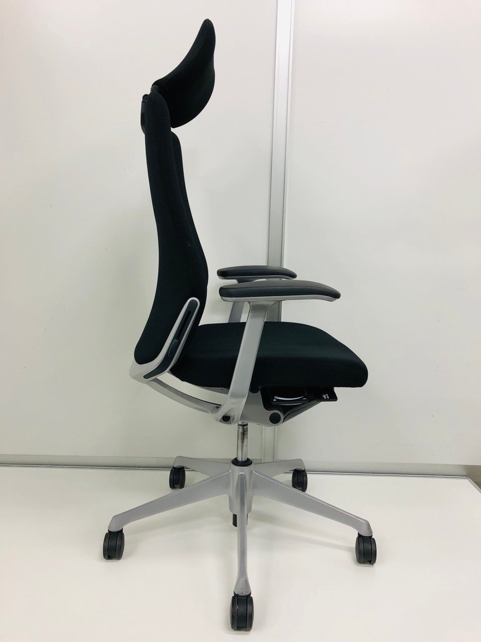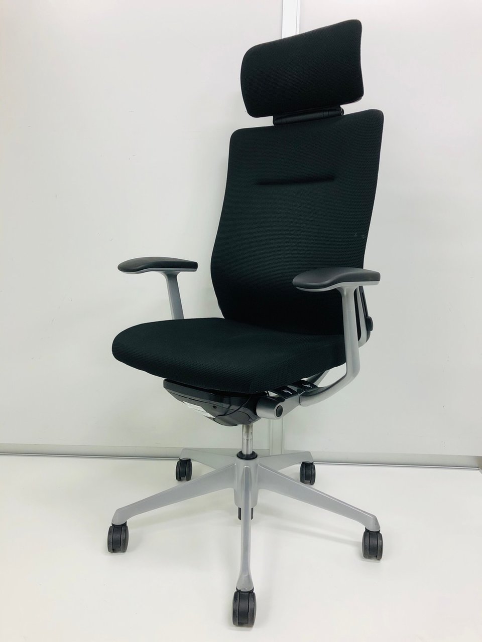 【先行商品!】【機能性抜群の人気チェア!自然な姿勢をサポートするアンクルチルトリクライニング搭載!】■オカムラ(okamura)製 コーラルチェア(Choral) 肘付 エクストラハイバックチェア ファブリックタイプ ■可動肘・ヘッドレスト付 ■ブラック
