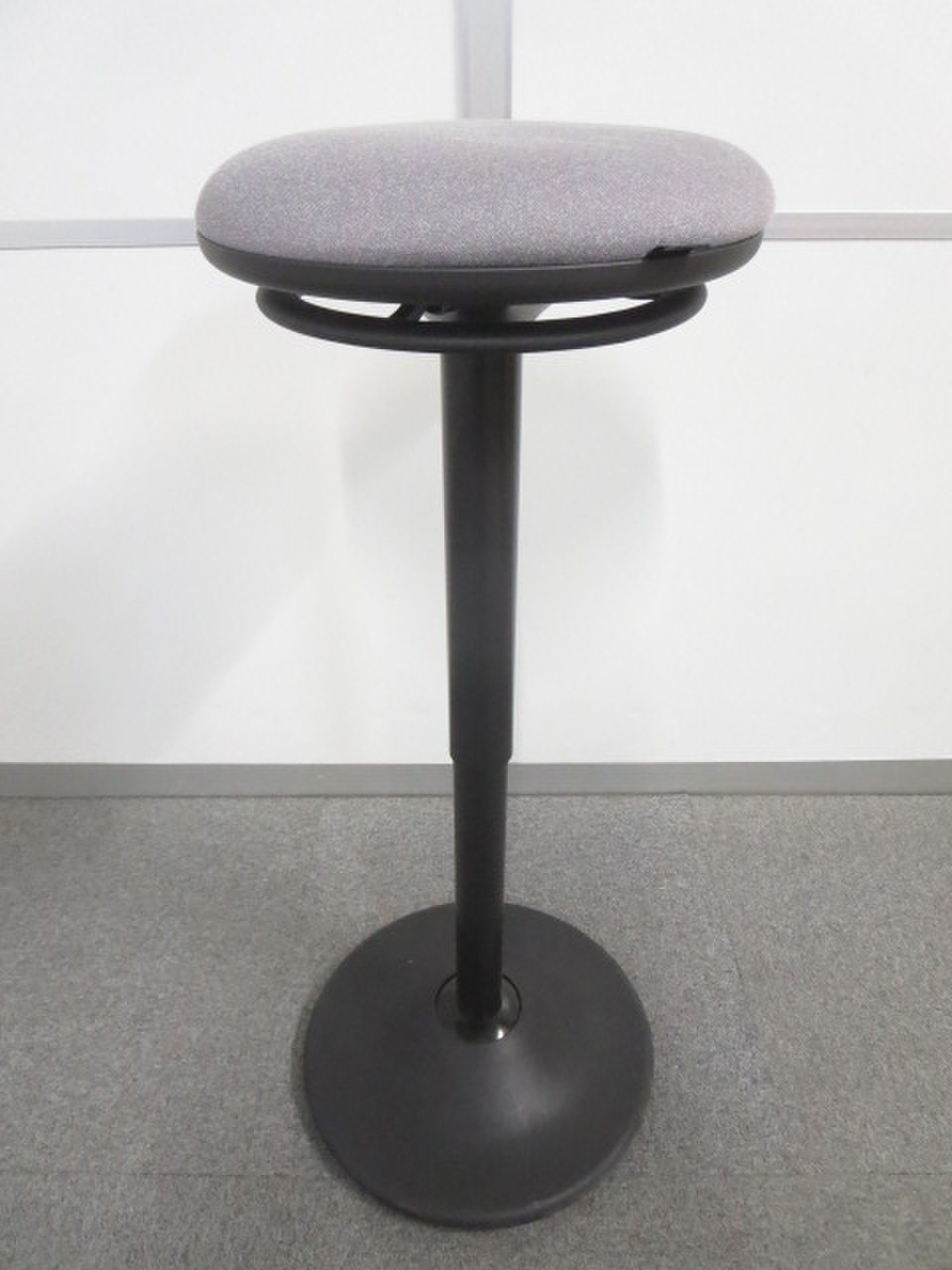 【半立位姿勢で短時間のPC作業やミーティングに最適】■オカムラ製 ピルエットチェア グレー スイング脚タイプ H565~815mm【体幹強化!】【ハイチェア】【丸椅子】【リフレッシュ】- 川崎店