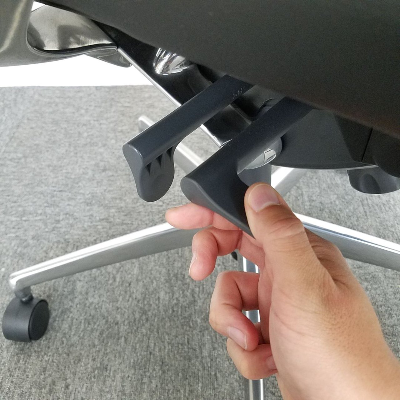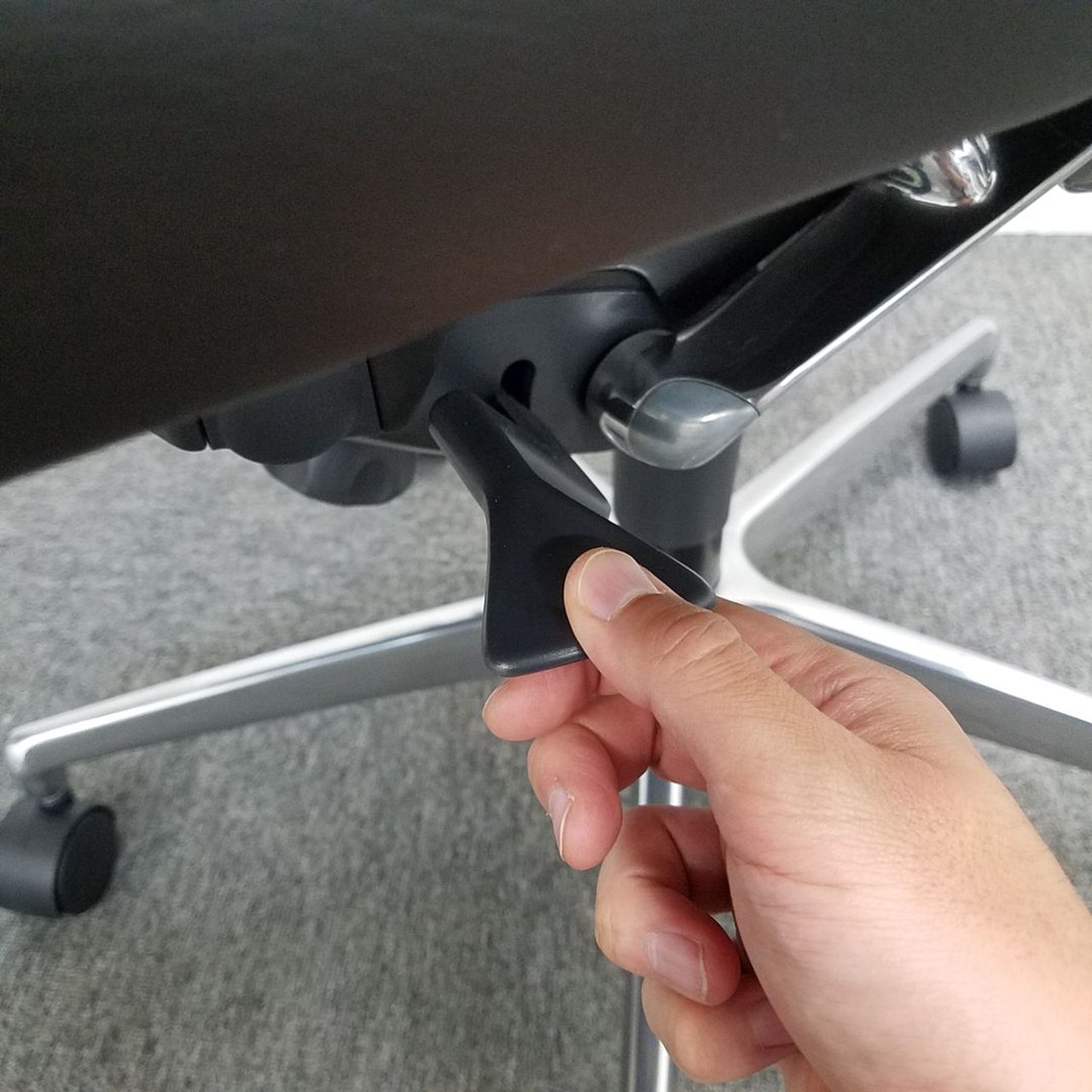 後傾に従い、座面が大きく後ろにスライドする機構を採用、姿勢変化の追従性にも優れ、