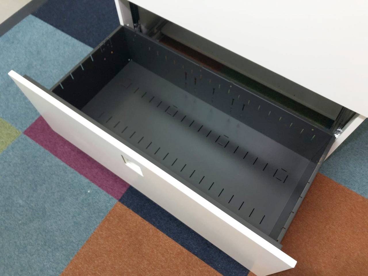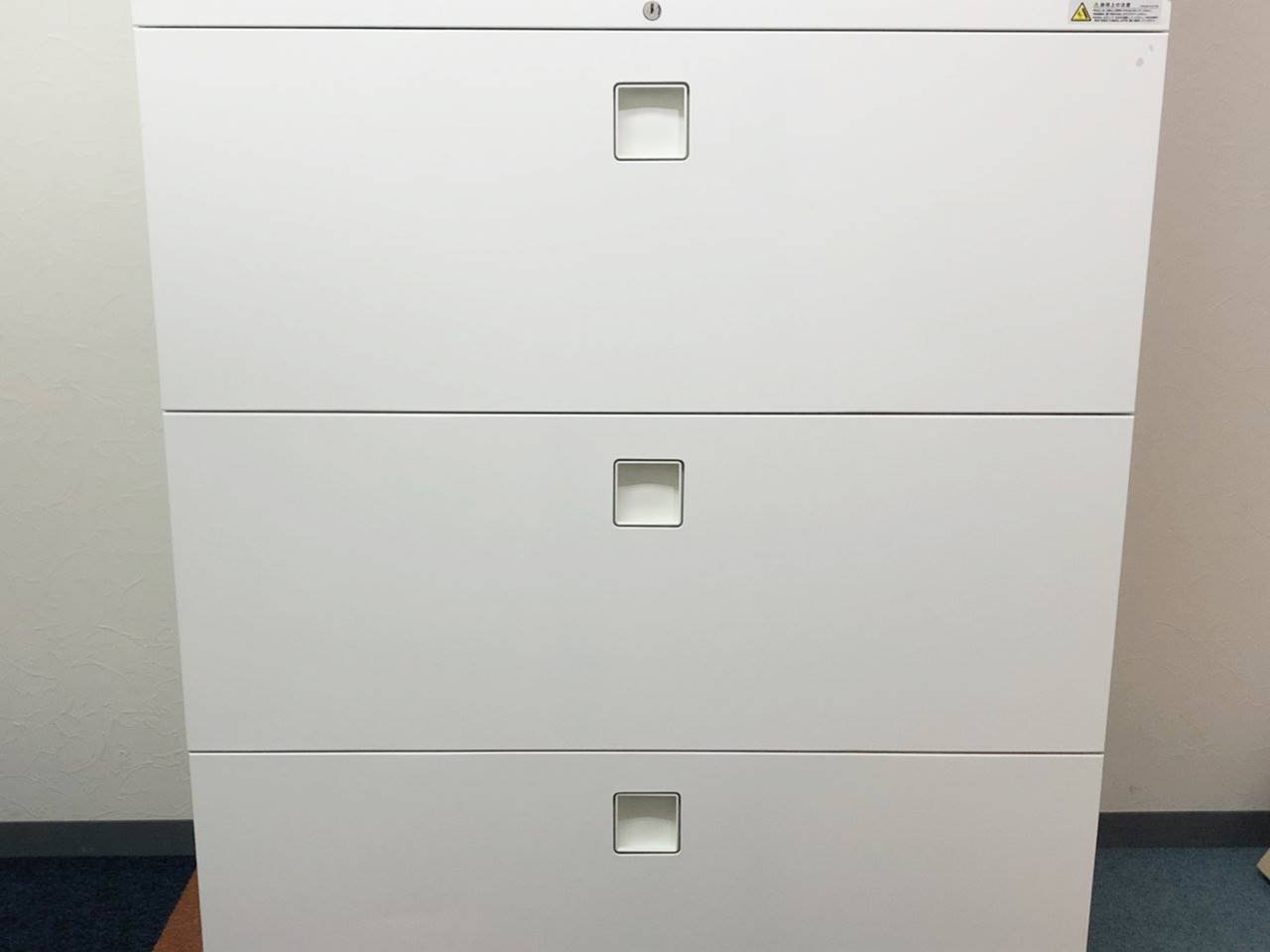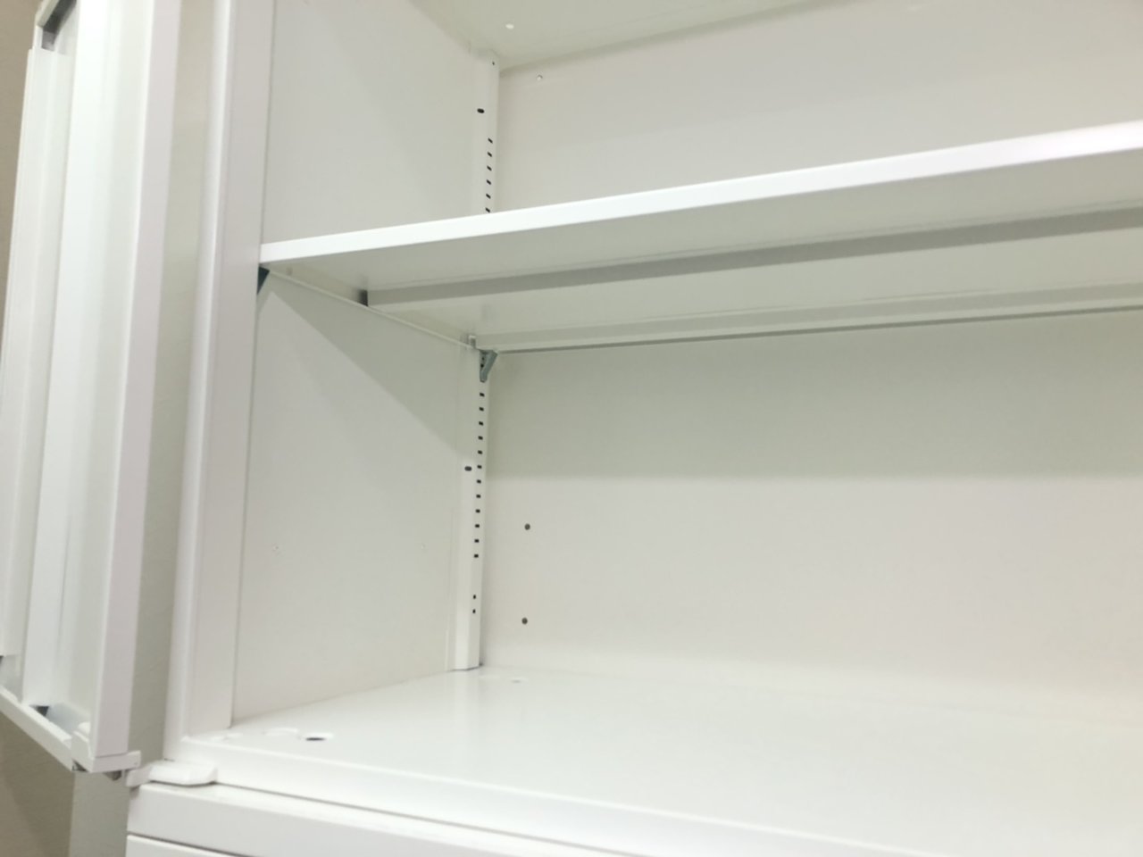 スライド式の扉+引き出しタイプの便利な書庫セットが入荷!使い勝手抜群のハイキャビネットが入荷! ■オカムラ/レクトライン/ホワイト 2枚引き戸+3段ラテラルキャビネット
