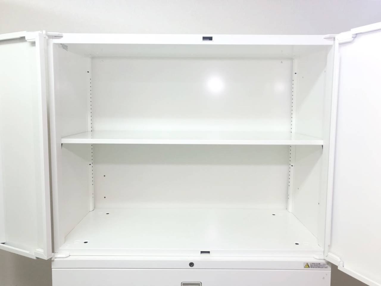 使い勝手抜群の上下書庫セット!上段両開き+下段オープン仕様! ■オカムラ/レクトライン/ホワイト