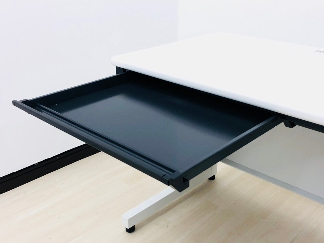 通常のデスクと同じく配線ダクトもあり、引き出し付!