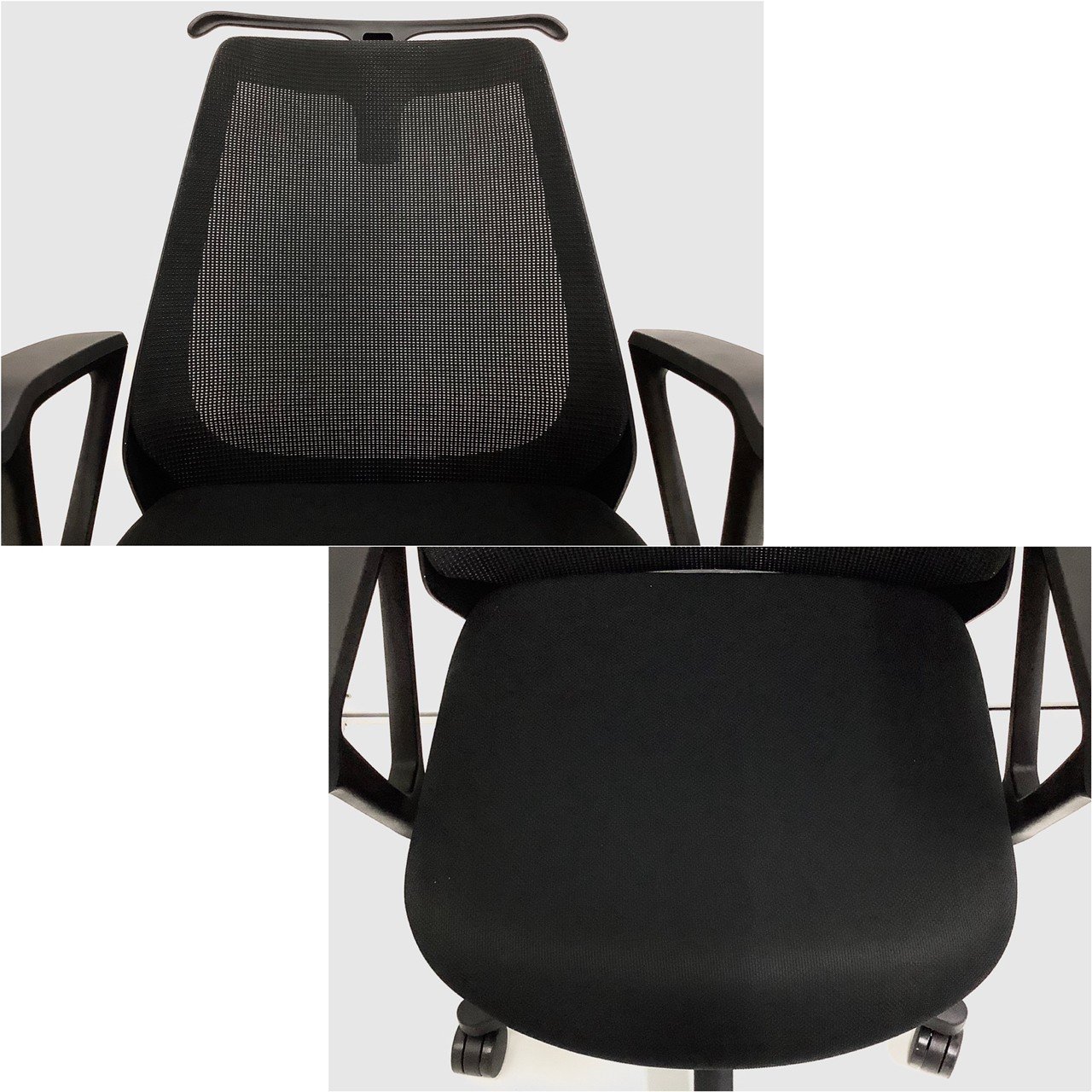 メッシュ素材 - 高伸縮性エラストマー繊維採用で、身体を包み込む座り心地と高い耐久性があります。透過性もあり、オールシーズン快適です。
