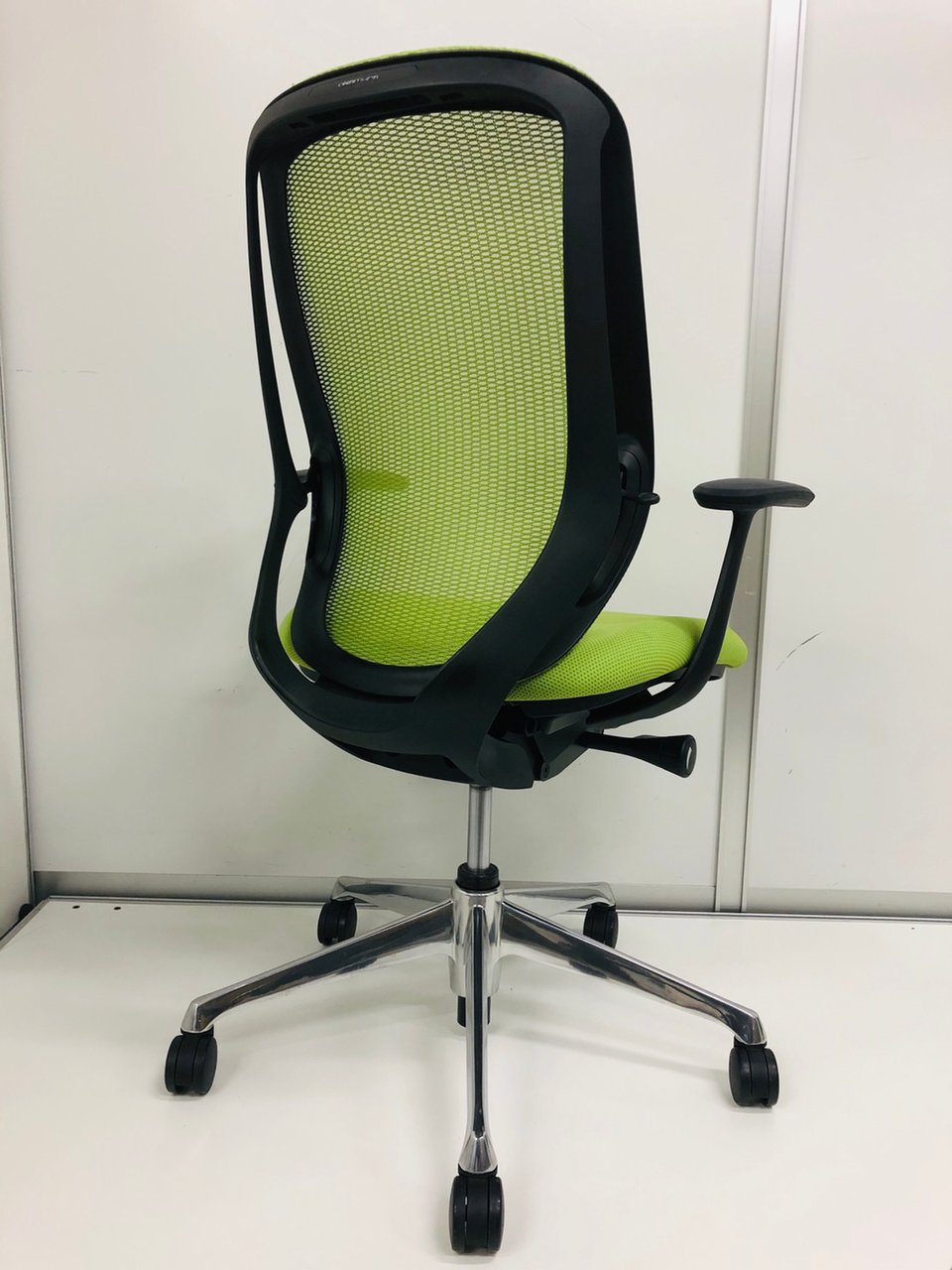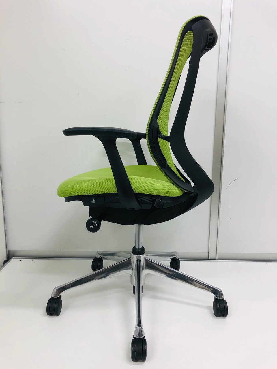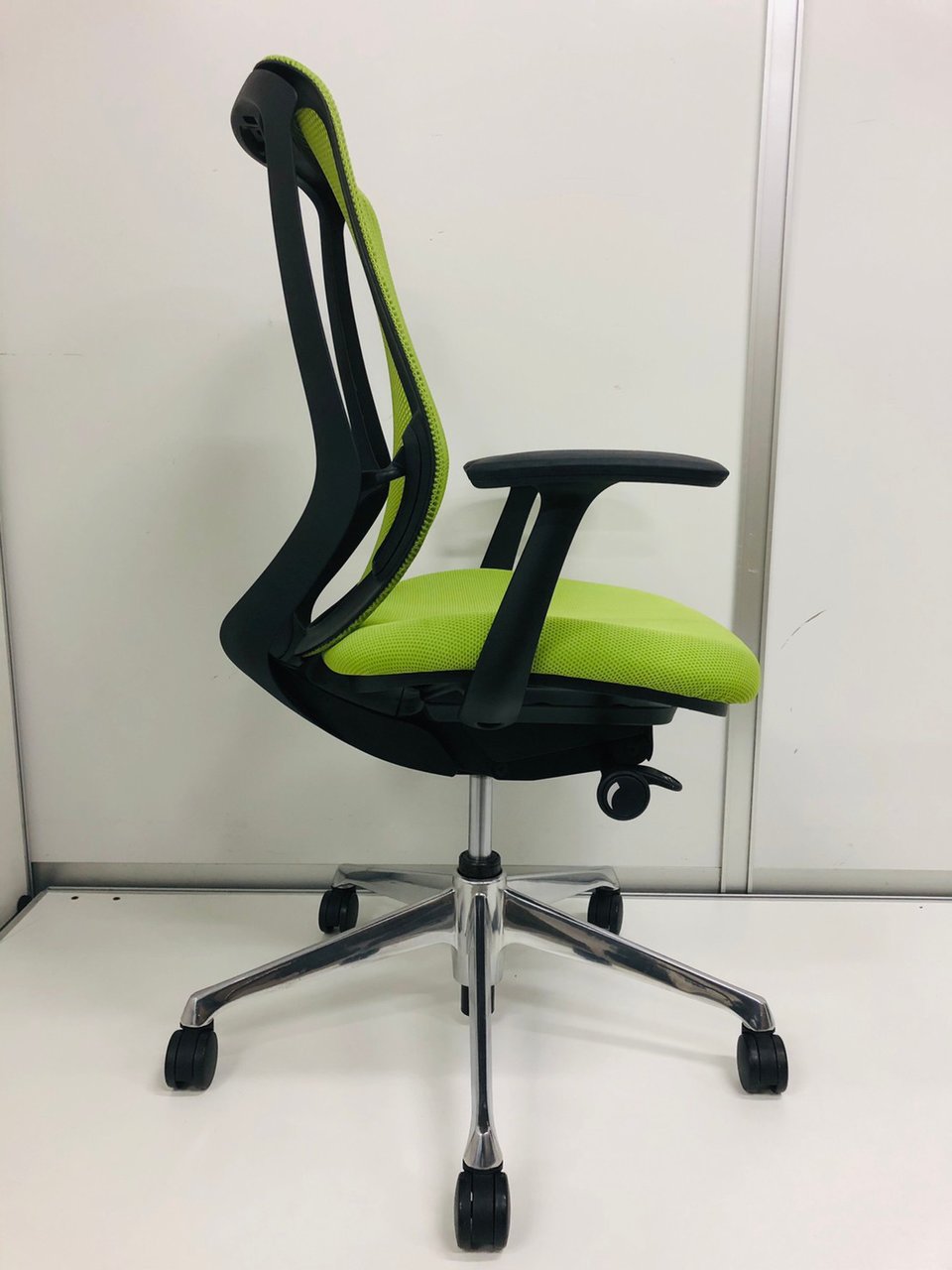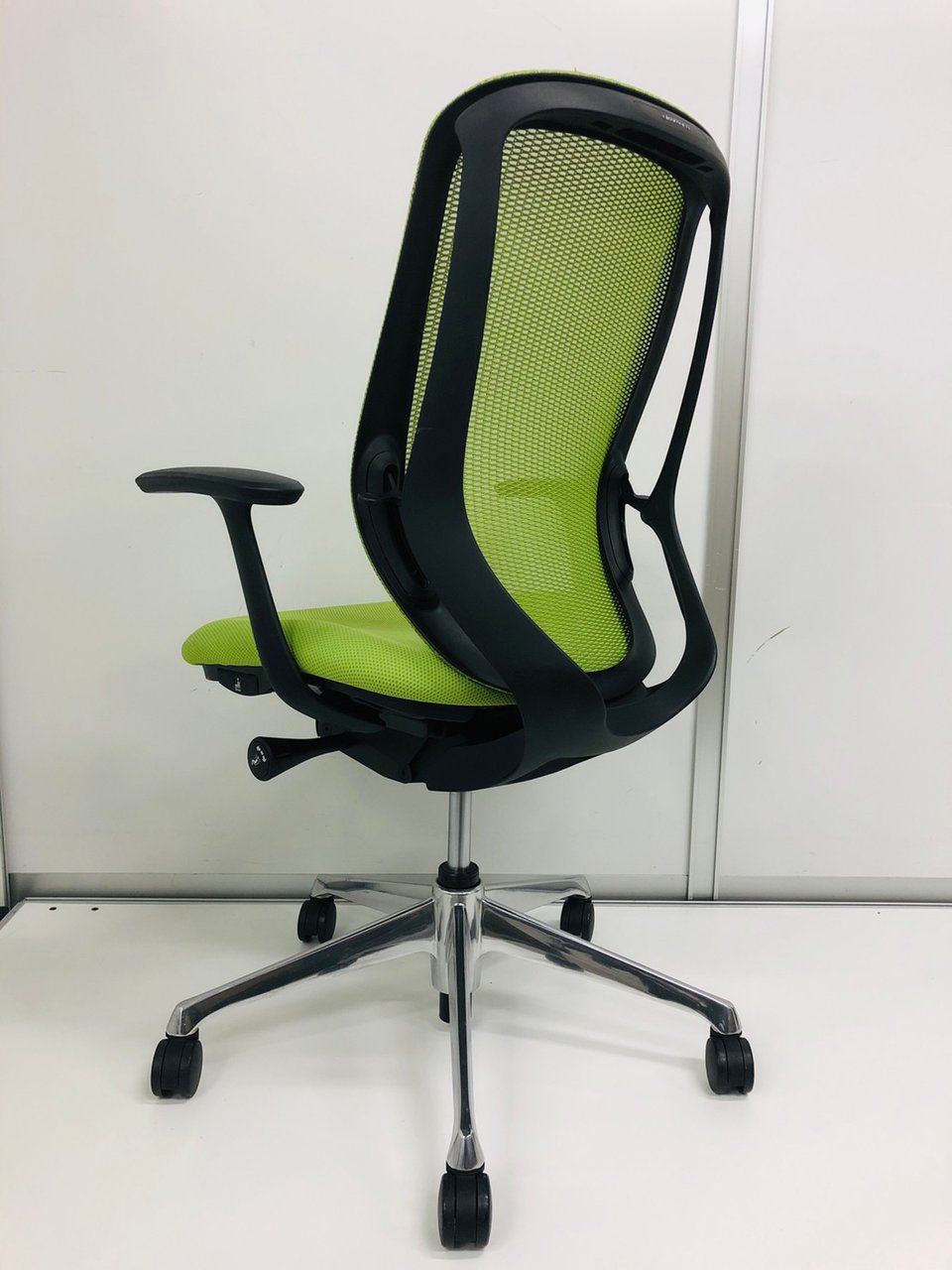 【人気のヘッドレスト付!集中作業にもオススメのワークヴェール付!】■オカムラ シルフィーチェア 可動肘付 ライムグリーン エクストラハイバック ■背のカーブを変えられる!新感覚のオフィスシーティング!【Okamrua Sylphy】★