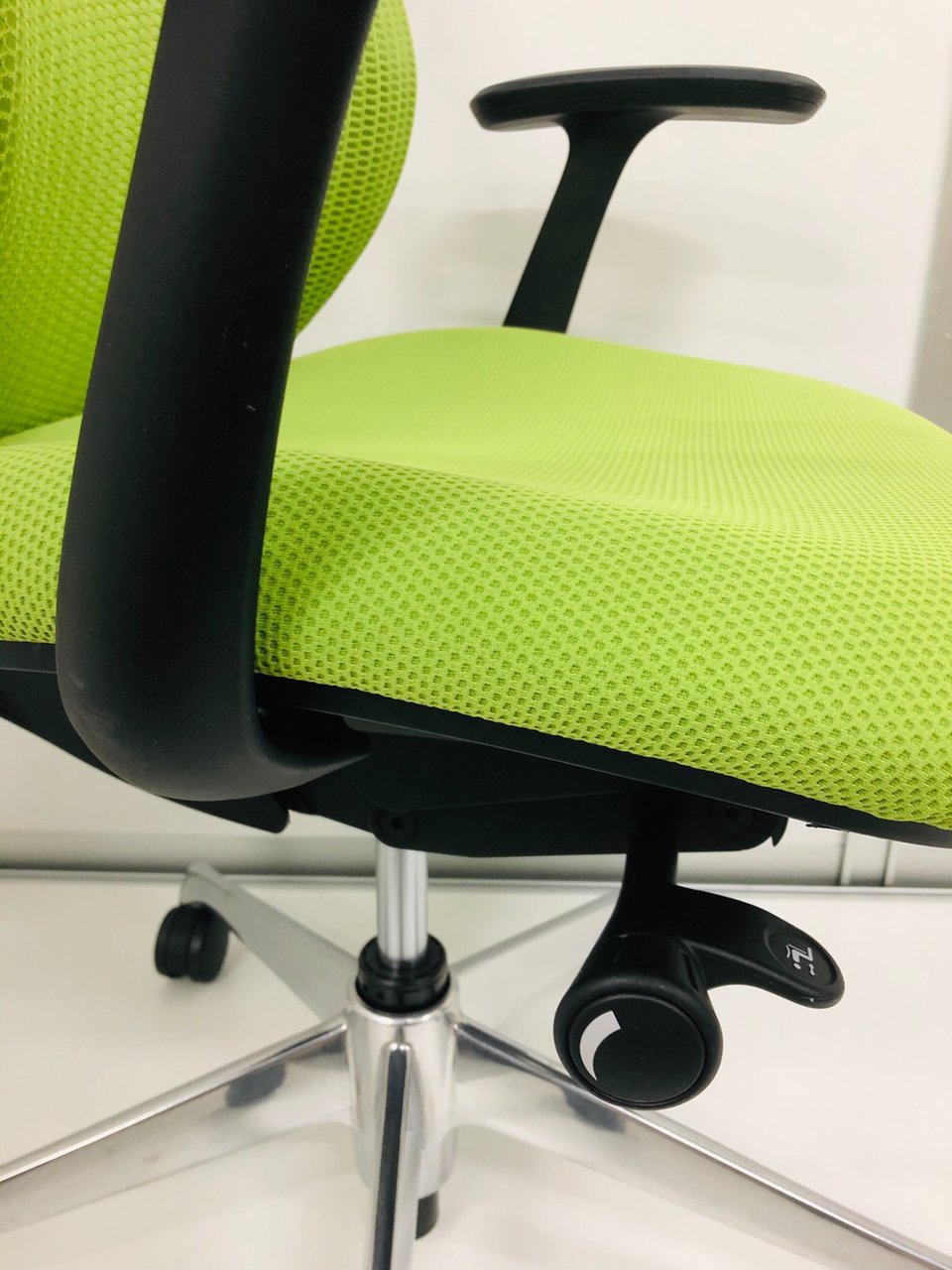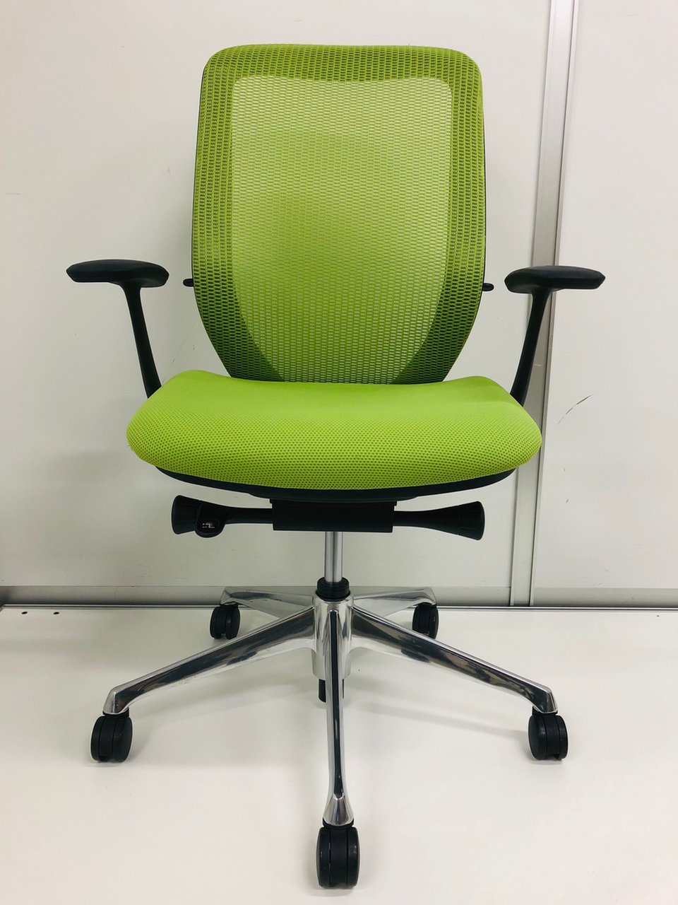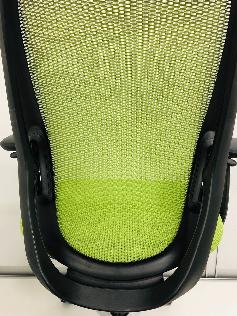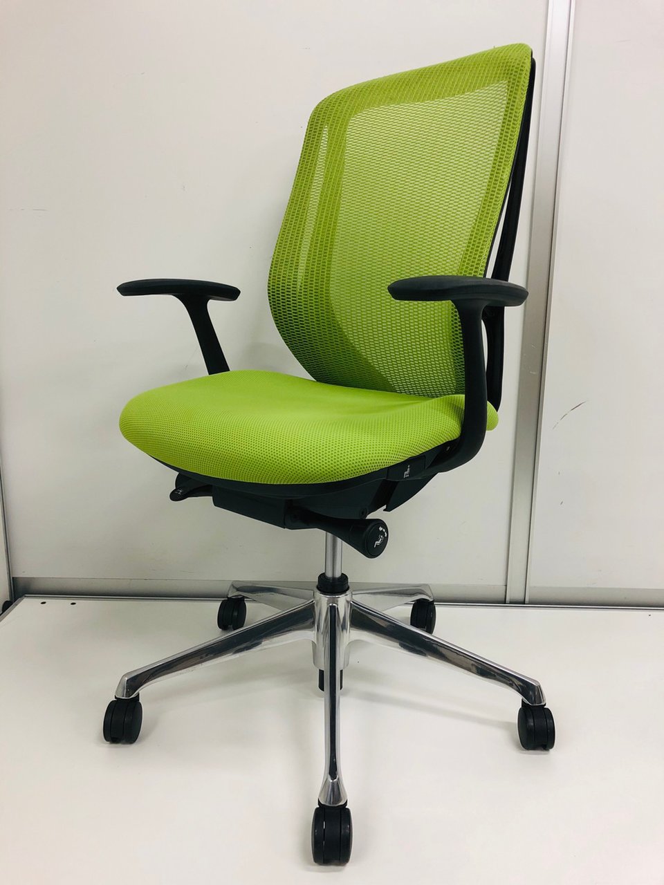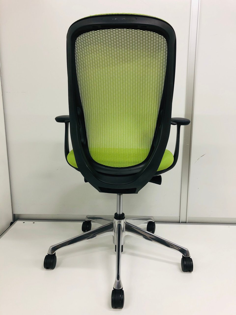 【人気のヘッドレスト付!集中作業にもオススメのワークヴェール付!】■オカムラ シルフィーチェア 可動肘付 ライムグリーン エクストラハイバック ■背のカーブを変えられる!新感覚のオフィスシーティング!【Okamrua Sylphy】★