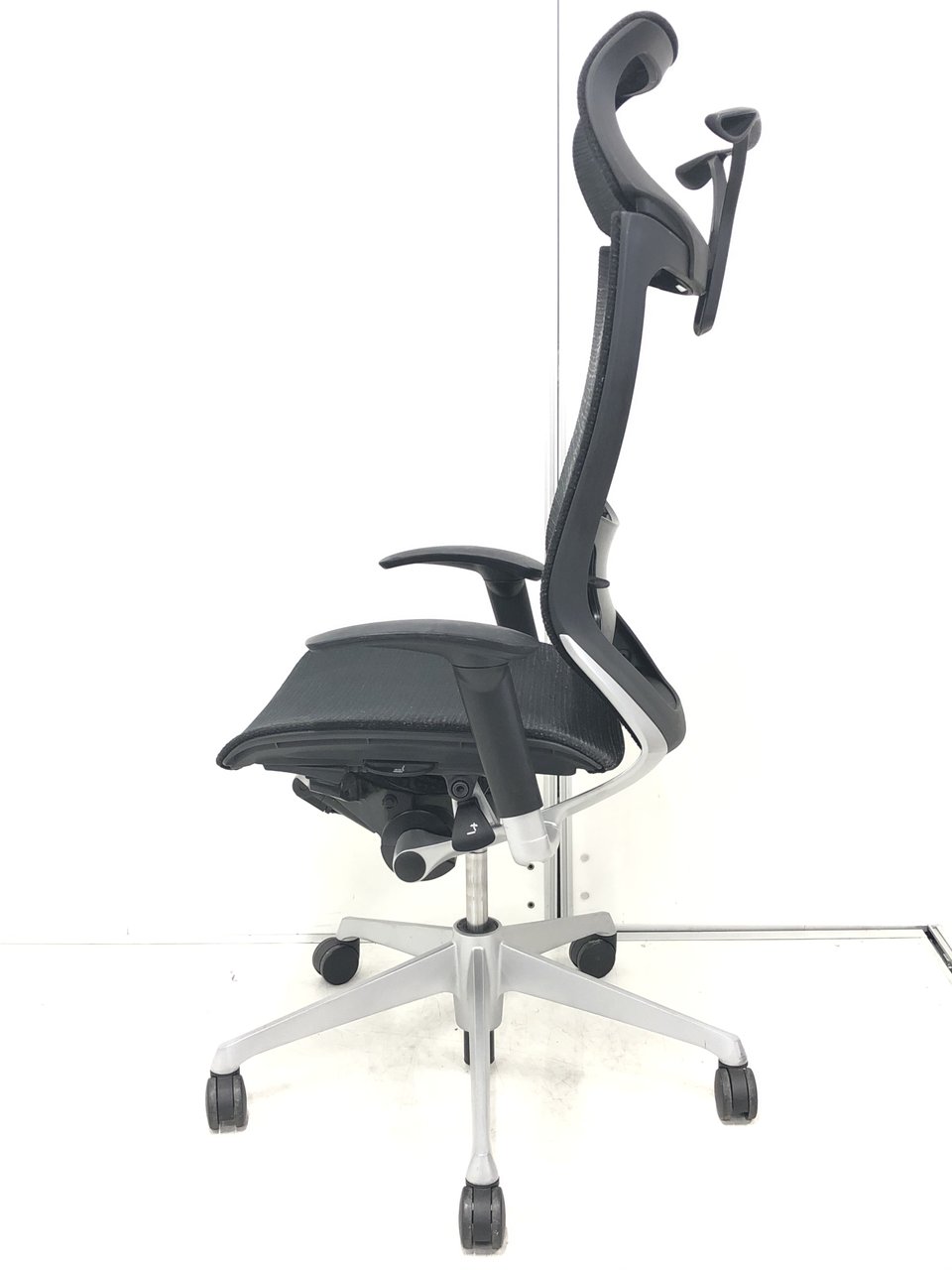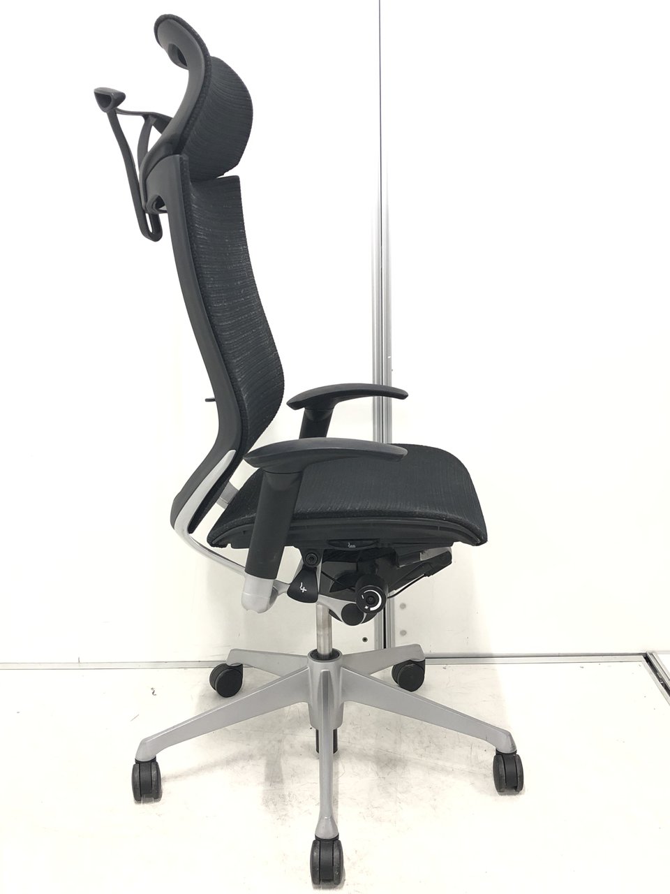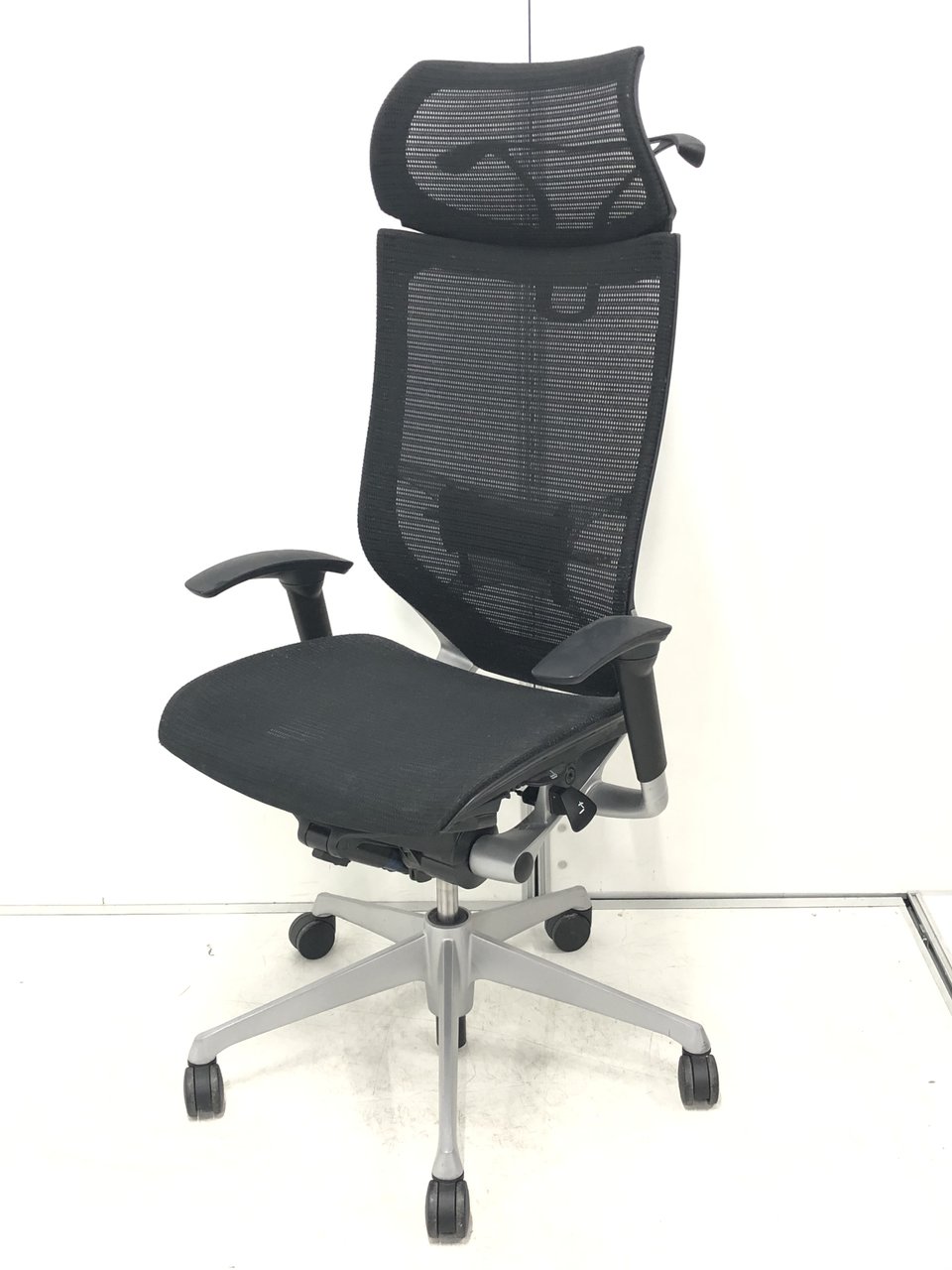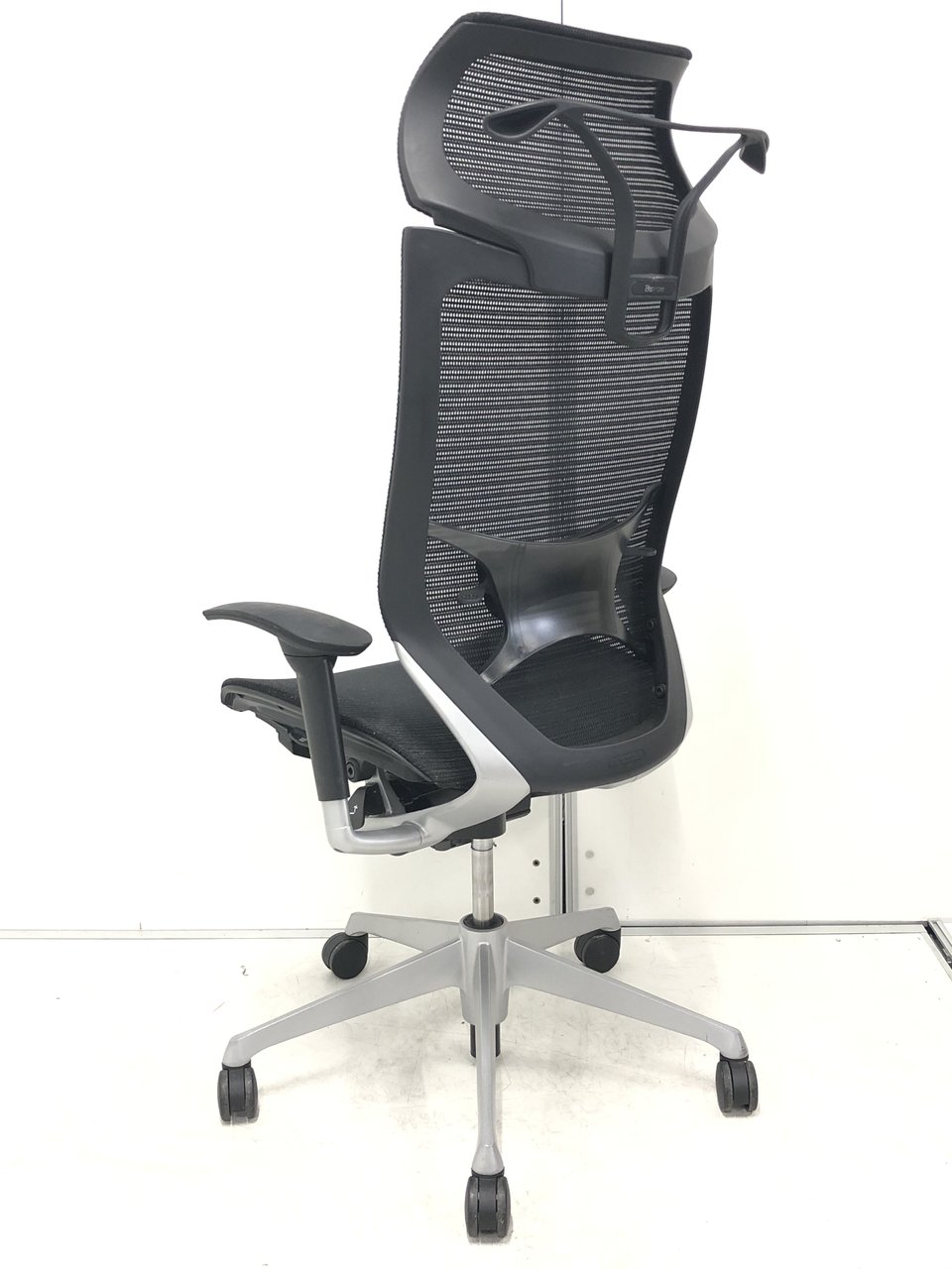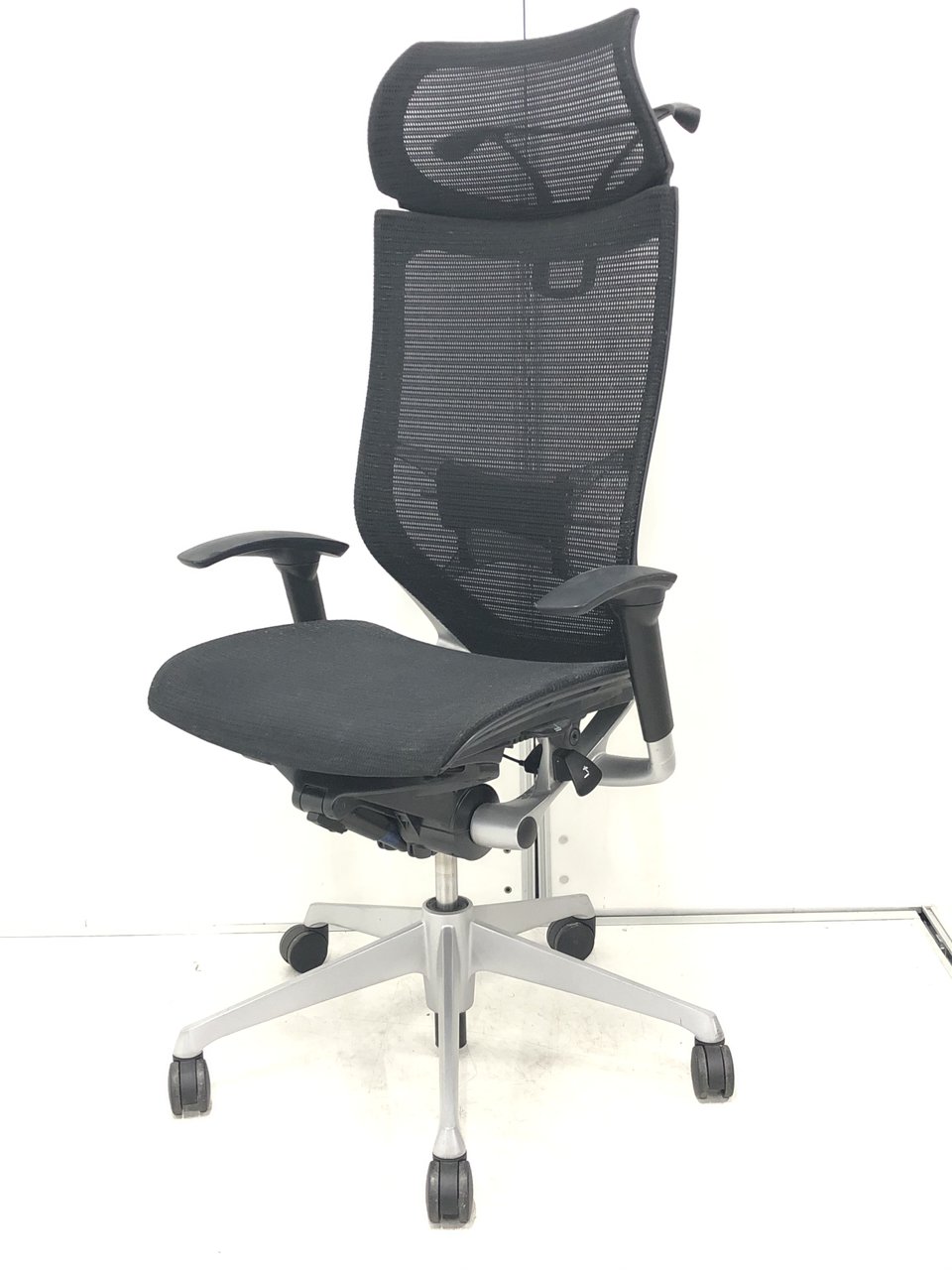 【限定1脚】人気のヘッドレスト付!数量限定入荷!【良い椅子は腰を守る投資です!】■オカムラ バロンチェア 可動肘付 ブラック ヘッドレスト付 座面メッシュ シルバーフレーム ハンガー付 ■上質な座り心地を体感できます!
