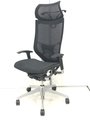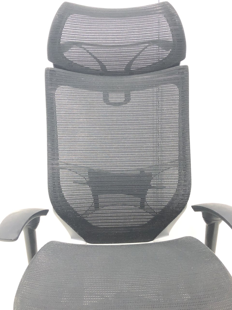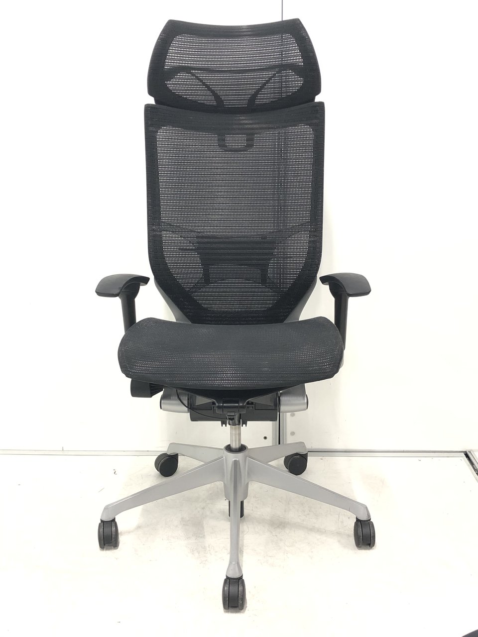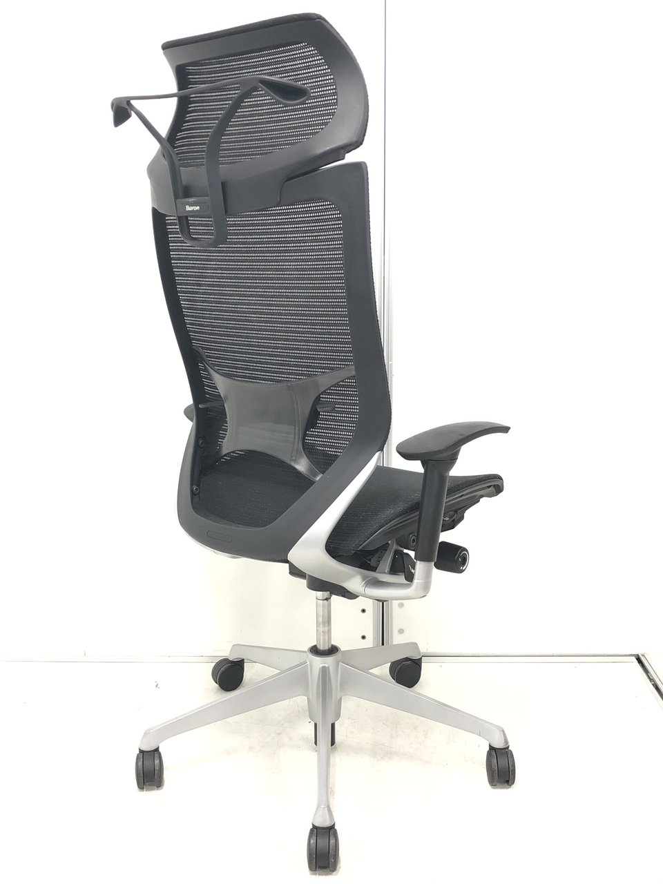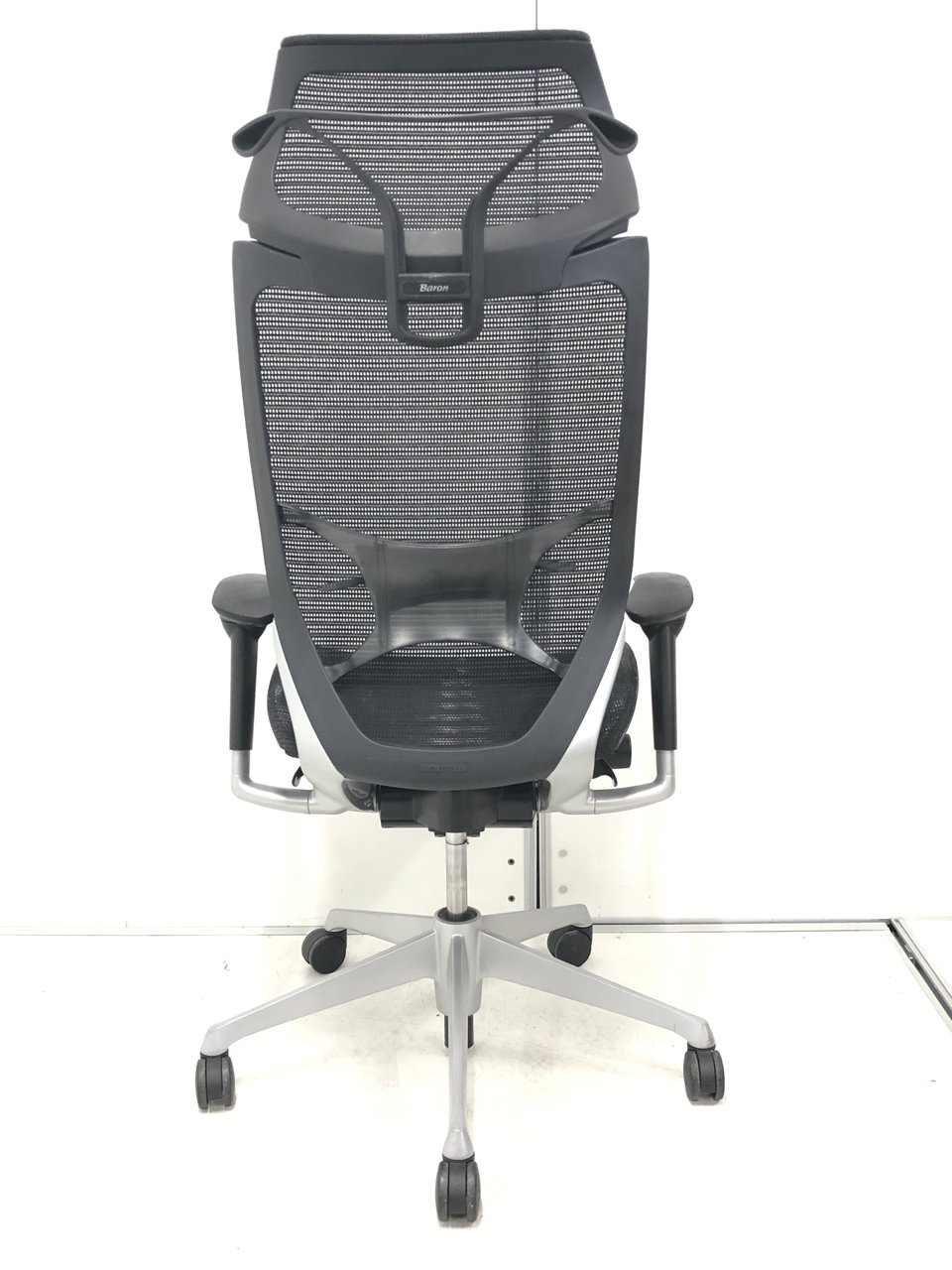 【2018年製】オカムラ バロンチェア エクストラハイバックモデル 座:メッシュ 背:メッシュ シルバーフレーム アジャストアーム 可動ヘッドレスト搭載 ※座面ヨレあり