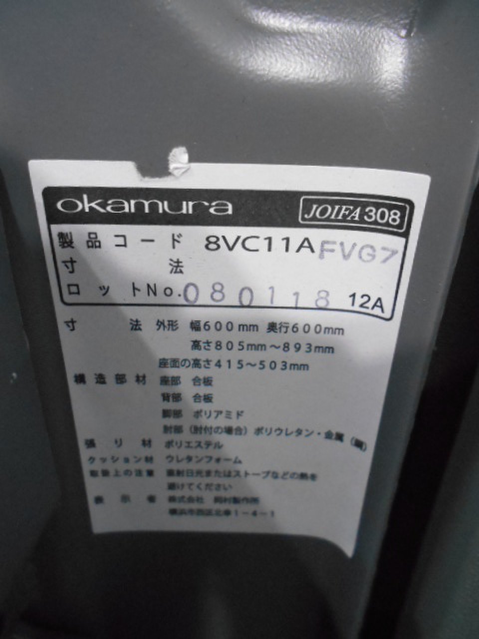 【コスト重視の方におすすめ】肘付きオフィスチェア オカムラ ヴィラージュ- 京都東寺店