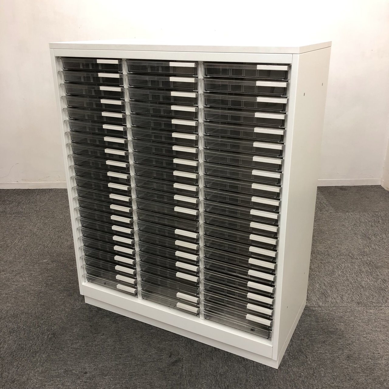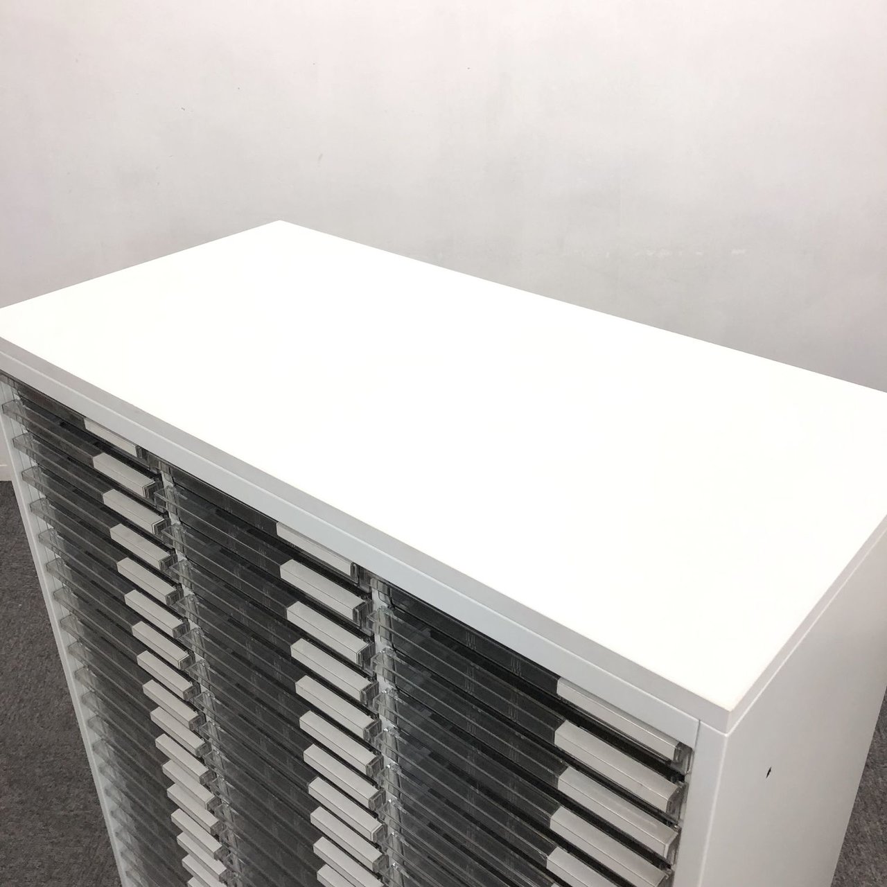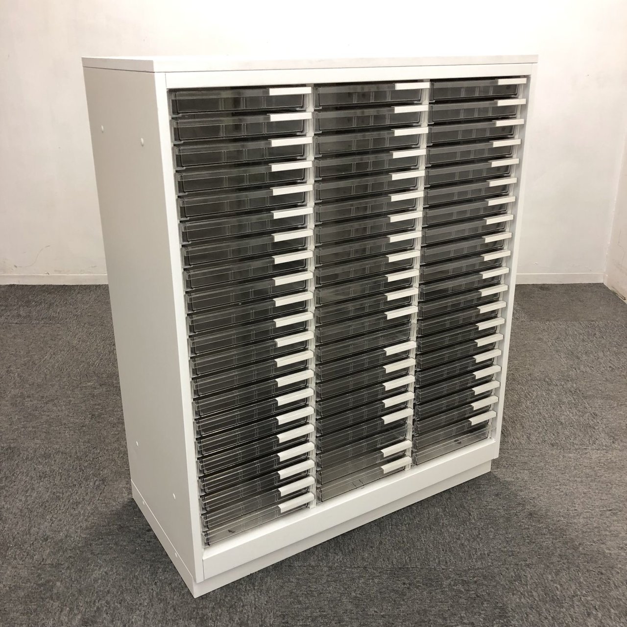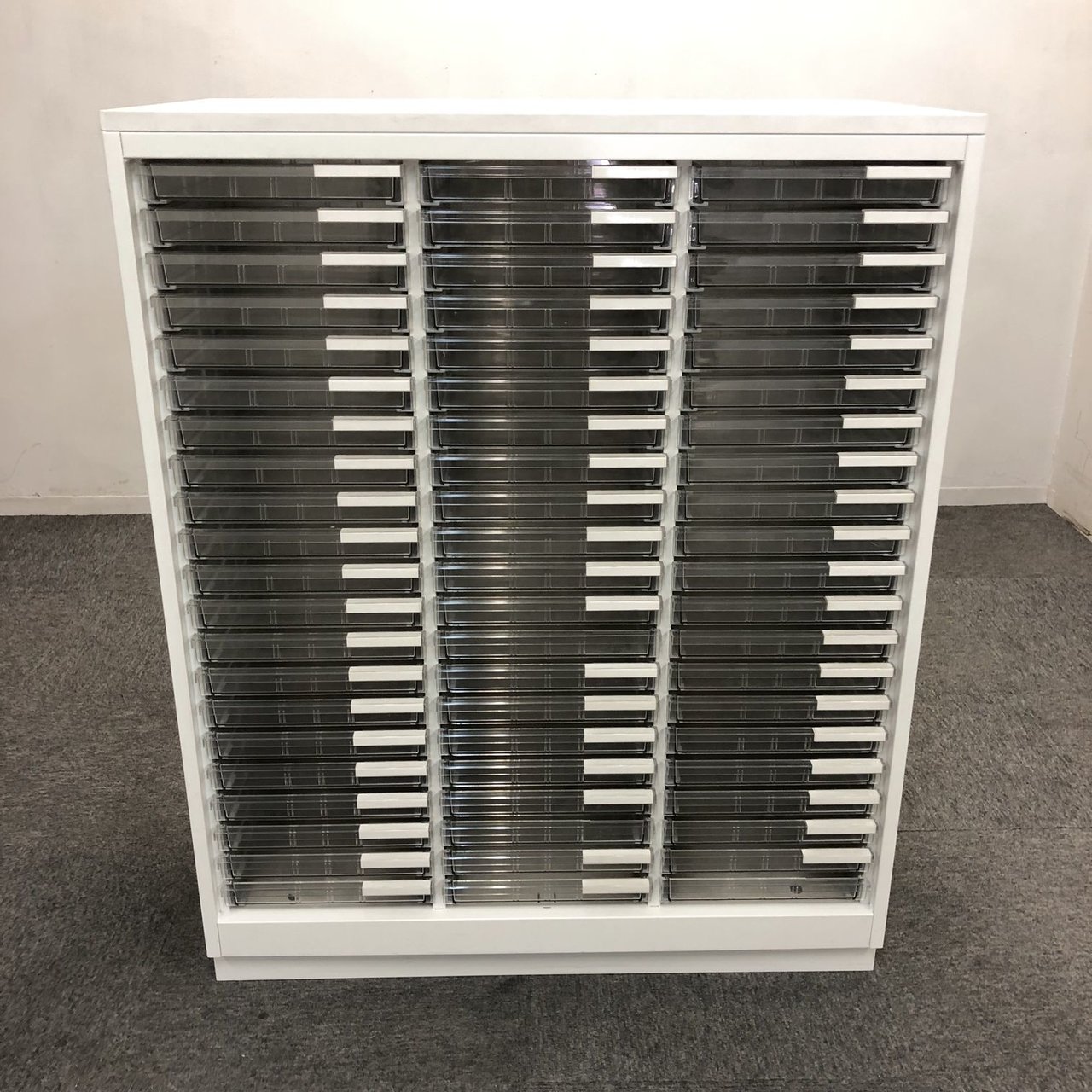 【書類・備品整理の必需品!】【珍しいクリトレが入荷!3列×浅型11段+深型5段】■イトーキ(ITOKI)製 シンラインシリーズ クリスタルトレー ローキャビネット ■3列×浅型11段+深型5段 ■天板・ベース付 ■色:ホワイト