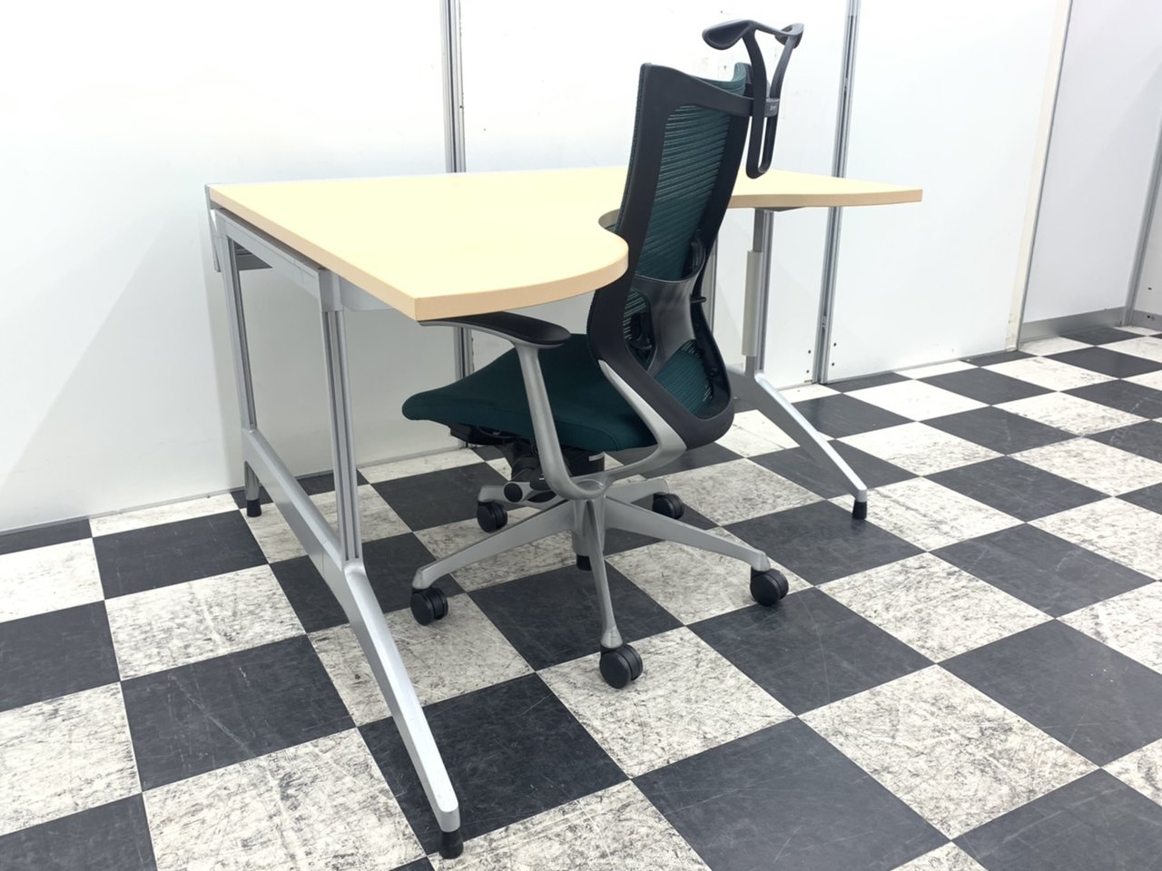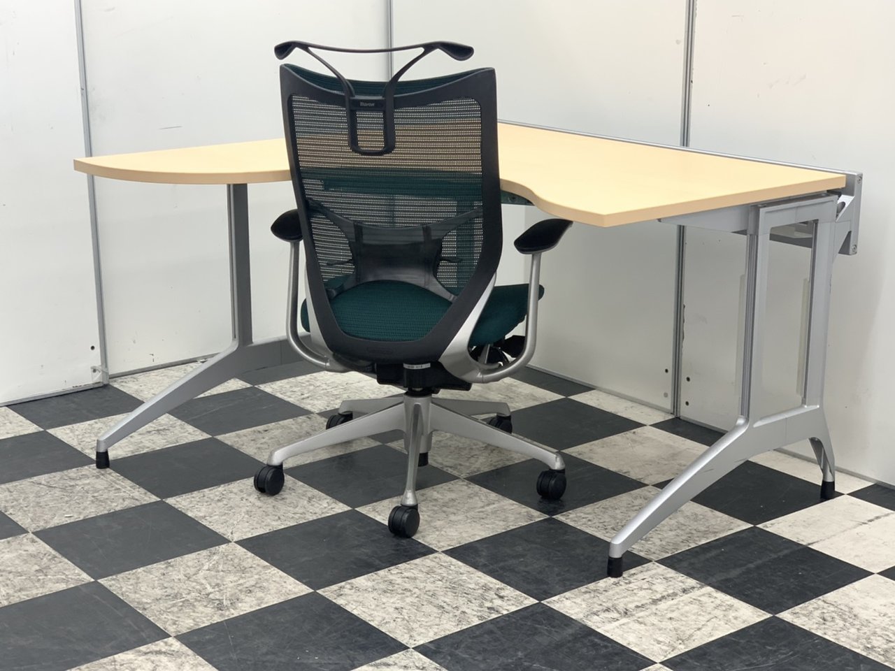 【セット割引10%オフ】注目度高いL字デスク(左ラウンド)+チェア!木目×グリーンの森林カラー。定価30万オーバー!- 埼玉本店