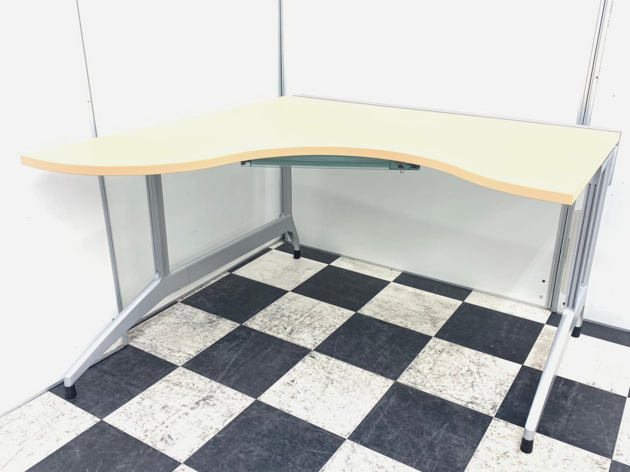 天板の手前が湾曲しており、体の部分は凹み、デスクサイドが出っ張っている事で、