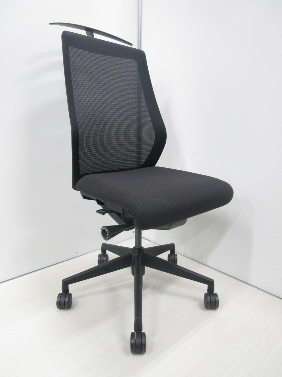【2019年製の希少品】【肘無】【ハンガー付き、エンブレム欠品】内田洋行/エルフィ/カラー:ジェットブラック【限定1脚のみ!】- 池袋店