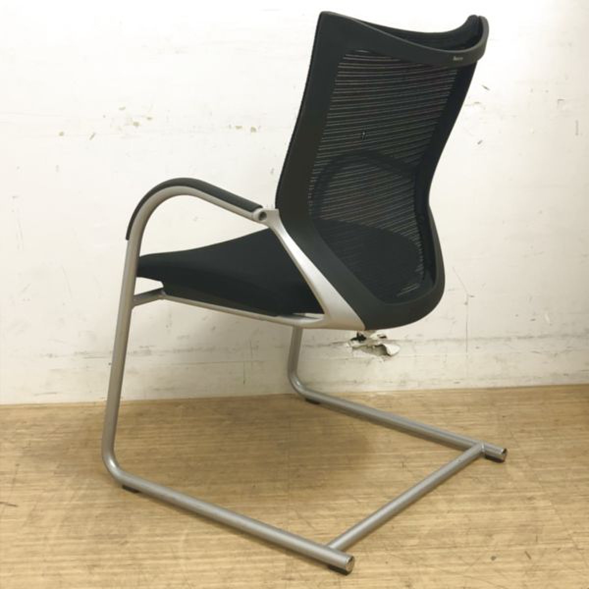 【在庫入替セール】オカムラ バロン ゲストチェア(ミーティングチェア) 背メッシュ×座クッション カンチレバー脚 ブラック×クロームメッキ