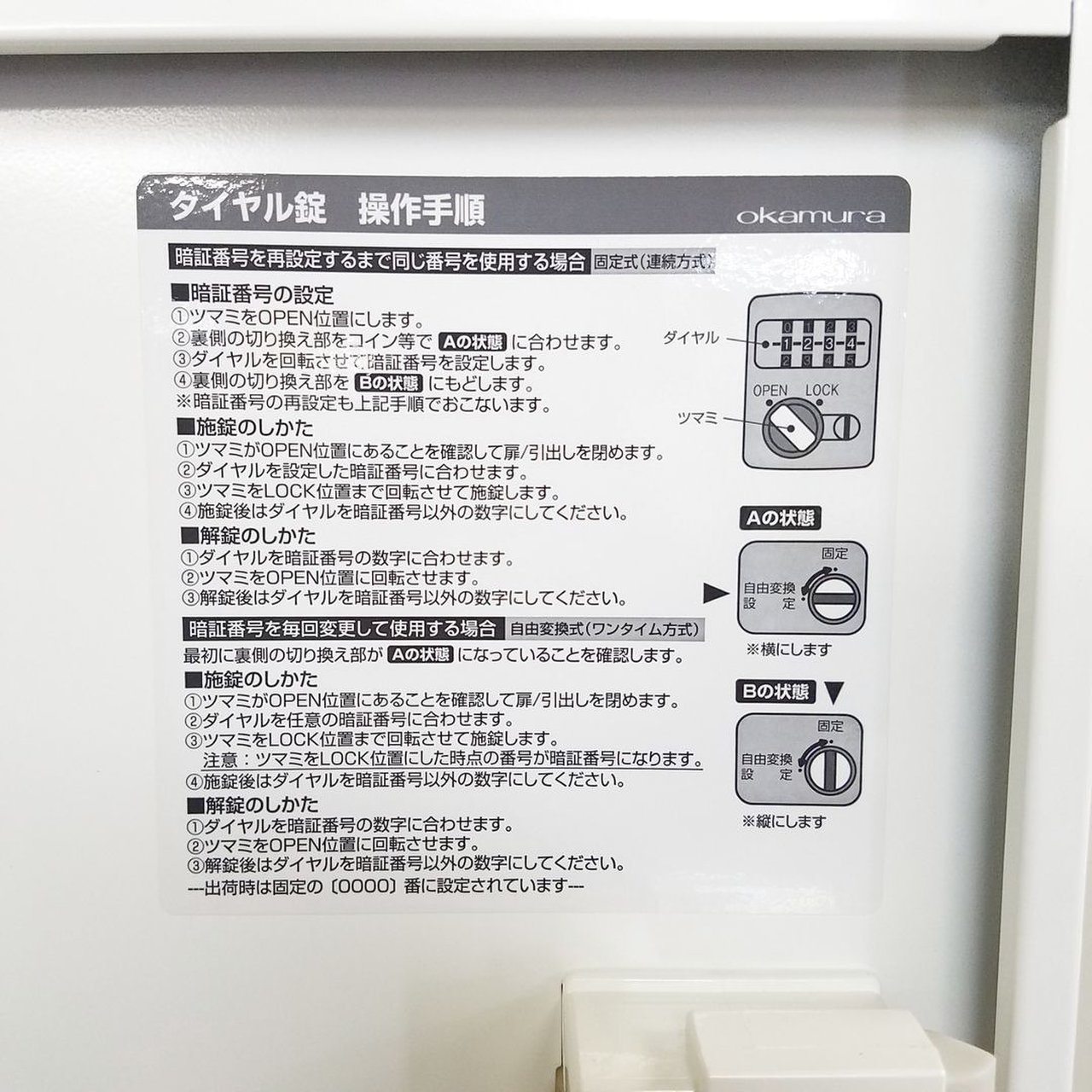 ダイヤル錠で鍵の紛失も御座いません。