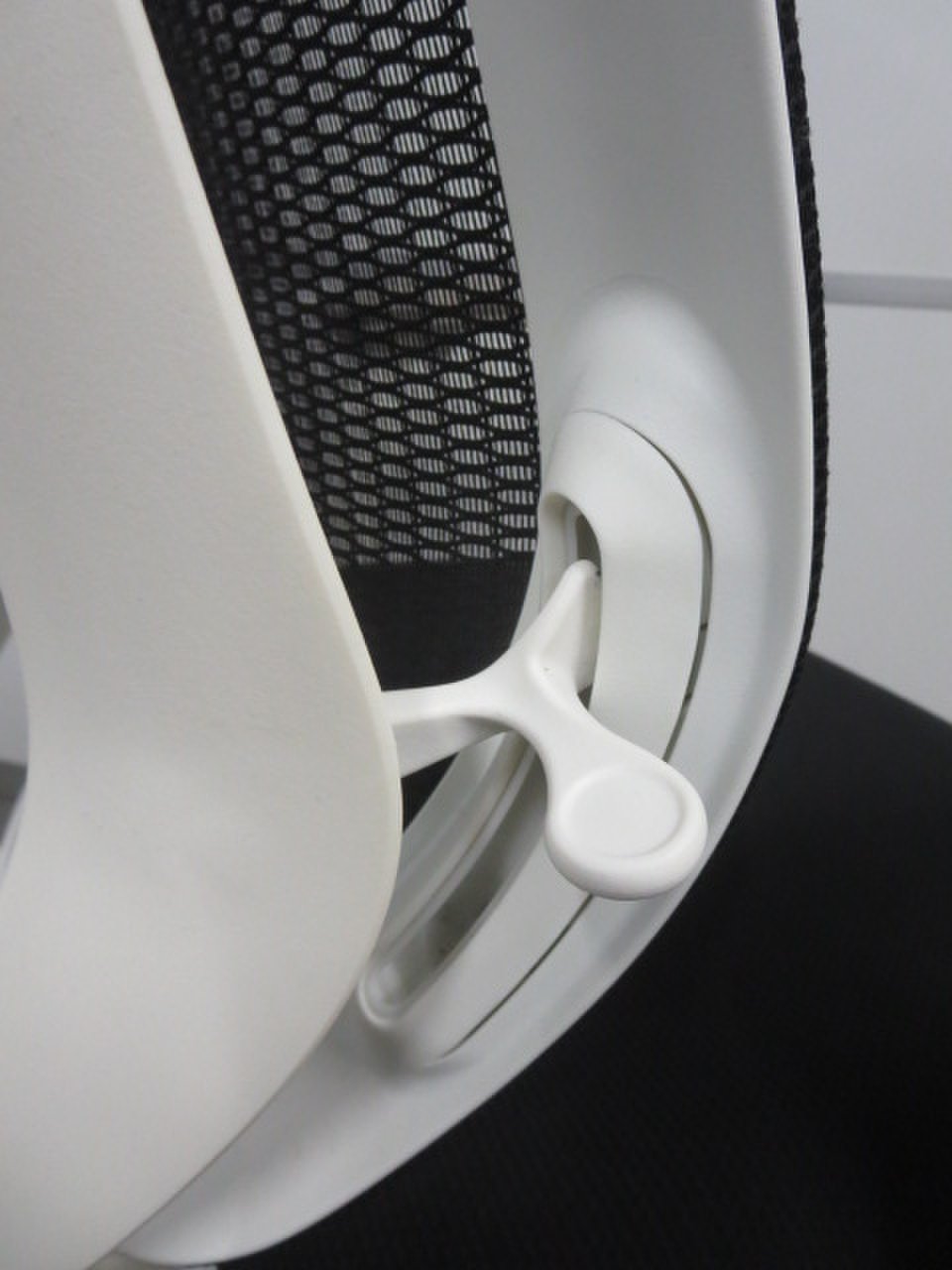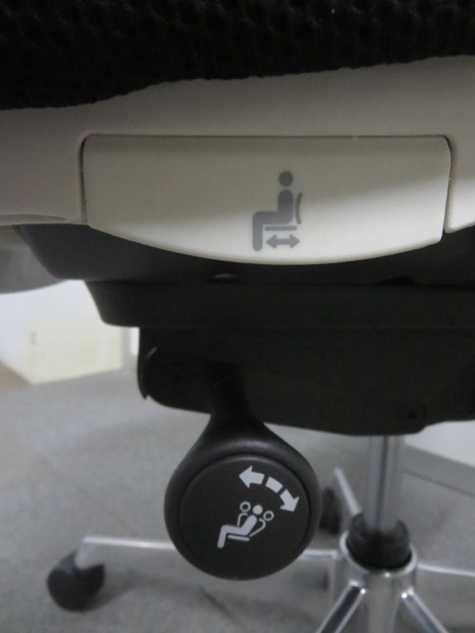 - 座面右下のダイヤル操作で、リクライニングの強弱調整が行えます。これまでのダイヤル式よりも、少ない回転数で、最弱?最強の調整が可能です。