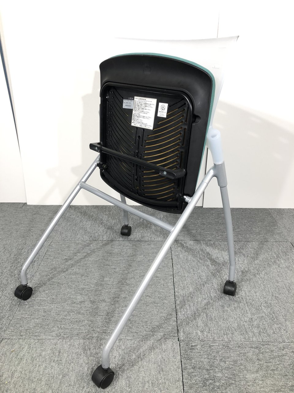 【ロット商品】鮮やかライトグリーン!座面を跳ね上げるネスティングタイプ|キャスター付【関西倉庫在庫】【新大阪】【北摂】- 新大阪店