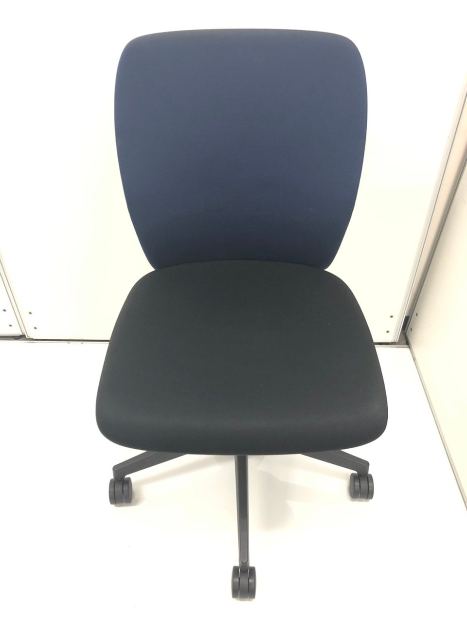 【座る人を選ばない、シンプルスタイルなオフィスの定番シリーズ!把手付きで汚れ対策&持ち運びラクラク!】 ■イトーキ(ITOKI)製 フルゴ(fulgo)チェア ローバック肘無し ■背面:ネイビーブルー/座面:ブラック【関西倉庫在庫】