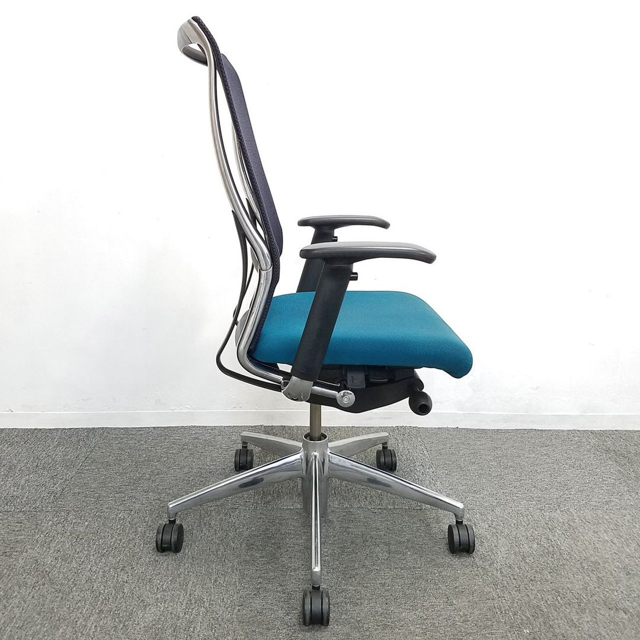 - 大きな曲線を描くフレームと表裏で見え方が変わる特殊メッシュで構成された背もたれ、そして2層構造の技術によって実現できた快適ながらも薄い座面は、先進的でありながらも柔らかさのあるスタイリッシュなデザインを実現しています。