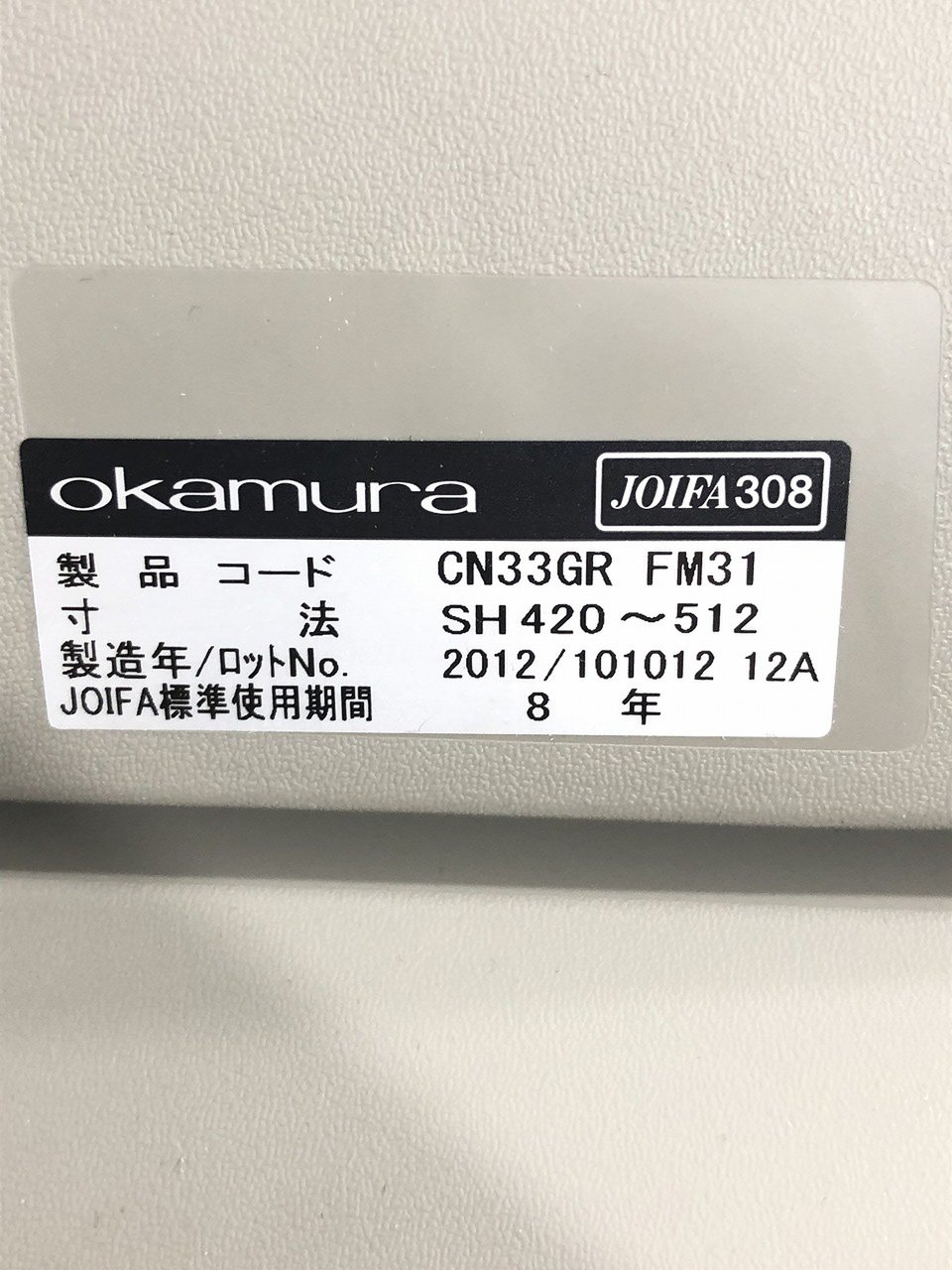 【中古】 CG-Rチェア CN33GR FM31 オカムラ/okamura 肘無ローバックチェア 296979