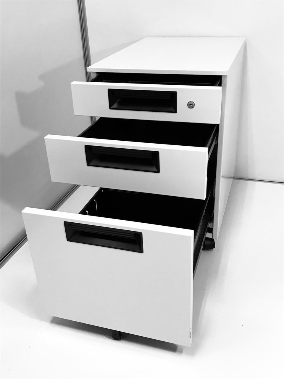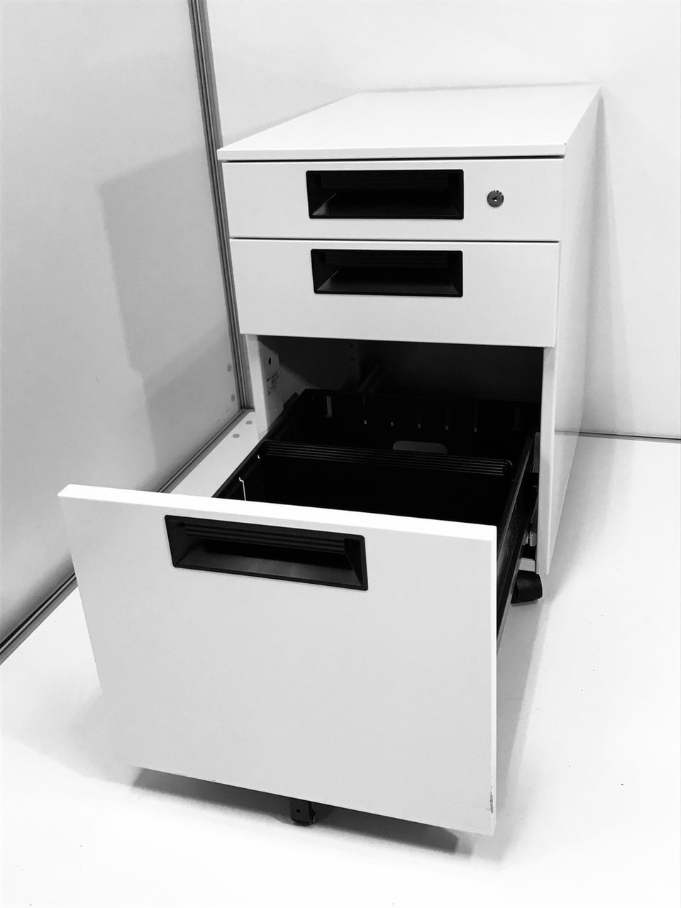 - 一部不具合ありその脇机・ワゴンの本来の効用を果たすための機能以外の一部が使用不可な状態。(例、引出が開閉しづらい、 キャスターロック機能使用不可、ラッチ不良 等がある。)