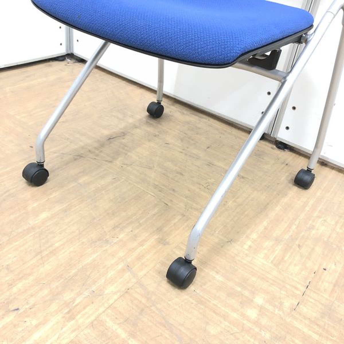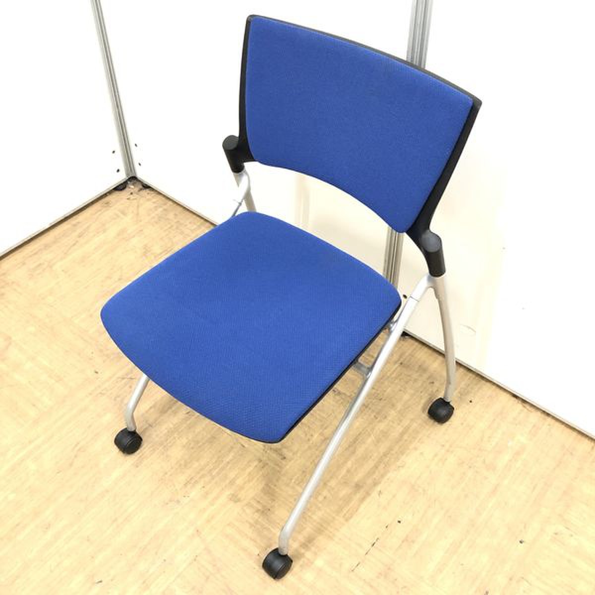 【関東倉庫在庫品】【フレキシブルに使える!平行ネスティングで省スペース化!】■イトーキ(ITOKI)製 マノス(MANOSS) ネスティングチェア ミーティングチェア ■背パッド付 ■キャスター付 ■ブルー【弊社使用欄:A01014525】【ECBMC】