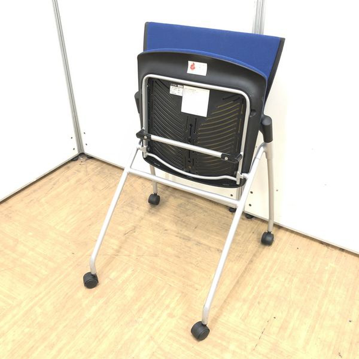 【セミナーや会議用にオススメ!平行ネスティングで省スペース化!】■イトーキ製 マノス ネスティングチェア ■背パッド付 キャスター付き ■ネイビーブルー オフィスバスターズ心斎橋店 ロット在庫