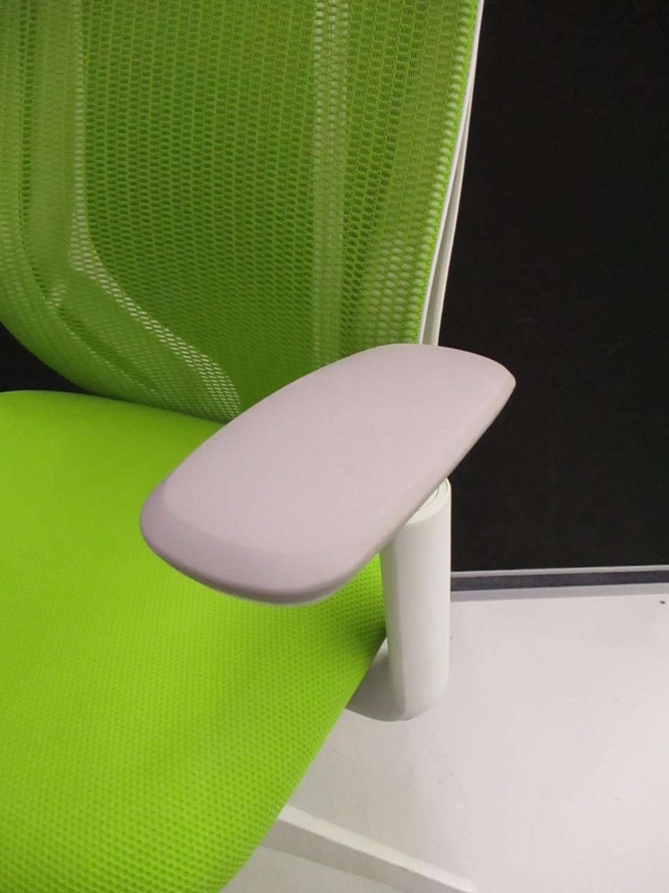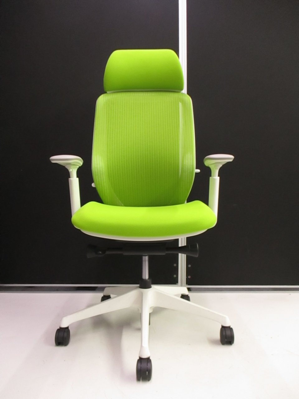 【在庫入替セール品】【人気のシルフィチェアヘッドレスト付きが1脚限定入荷!】オカムラ シルフィ ライムグリーン エクストラハイバック ホワイトフレーム デザインアーム(固定肘) 前傾チルト機能付き