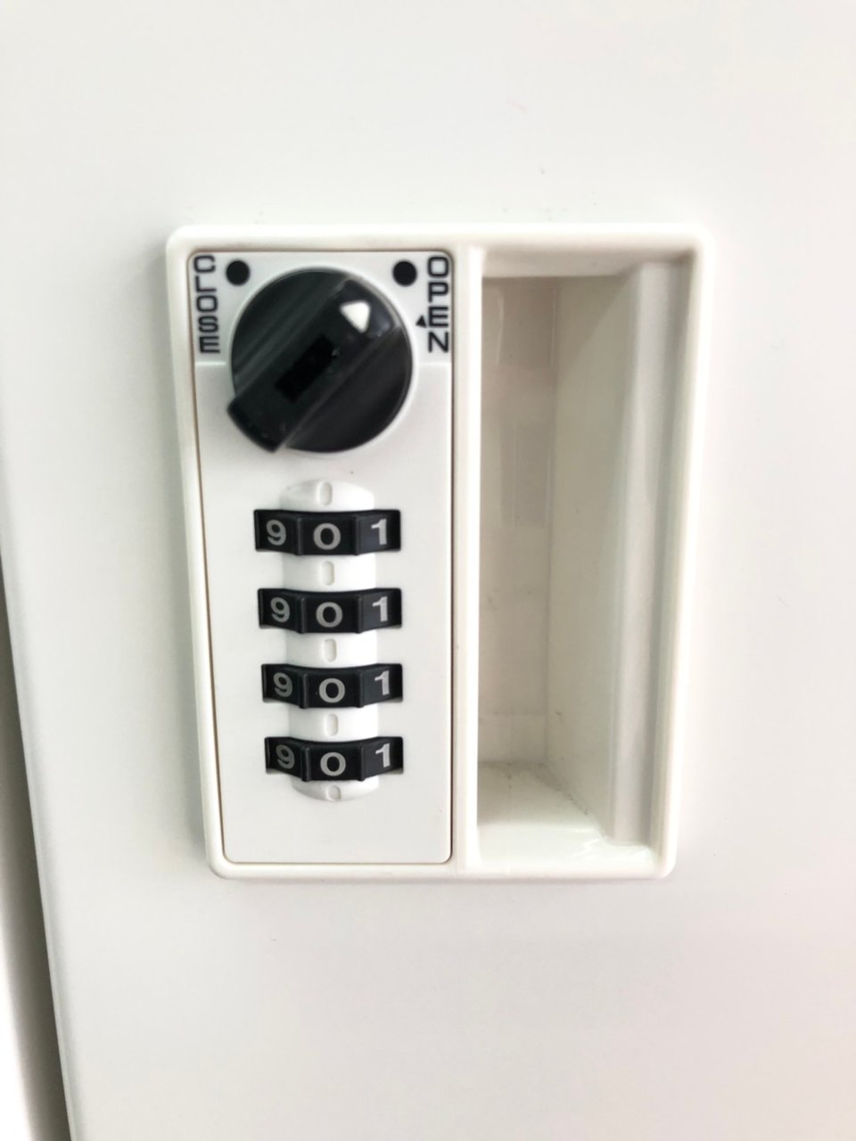色はホワイト、鍵はダイヤル式の為鍵をなくす心配がありません。