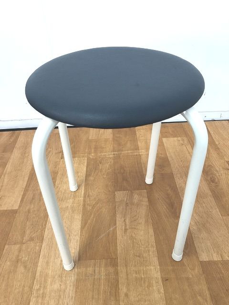 座面紺色で脚がホワイトカラーの丸椅子の入荷です!!