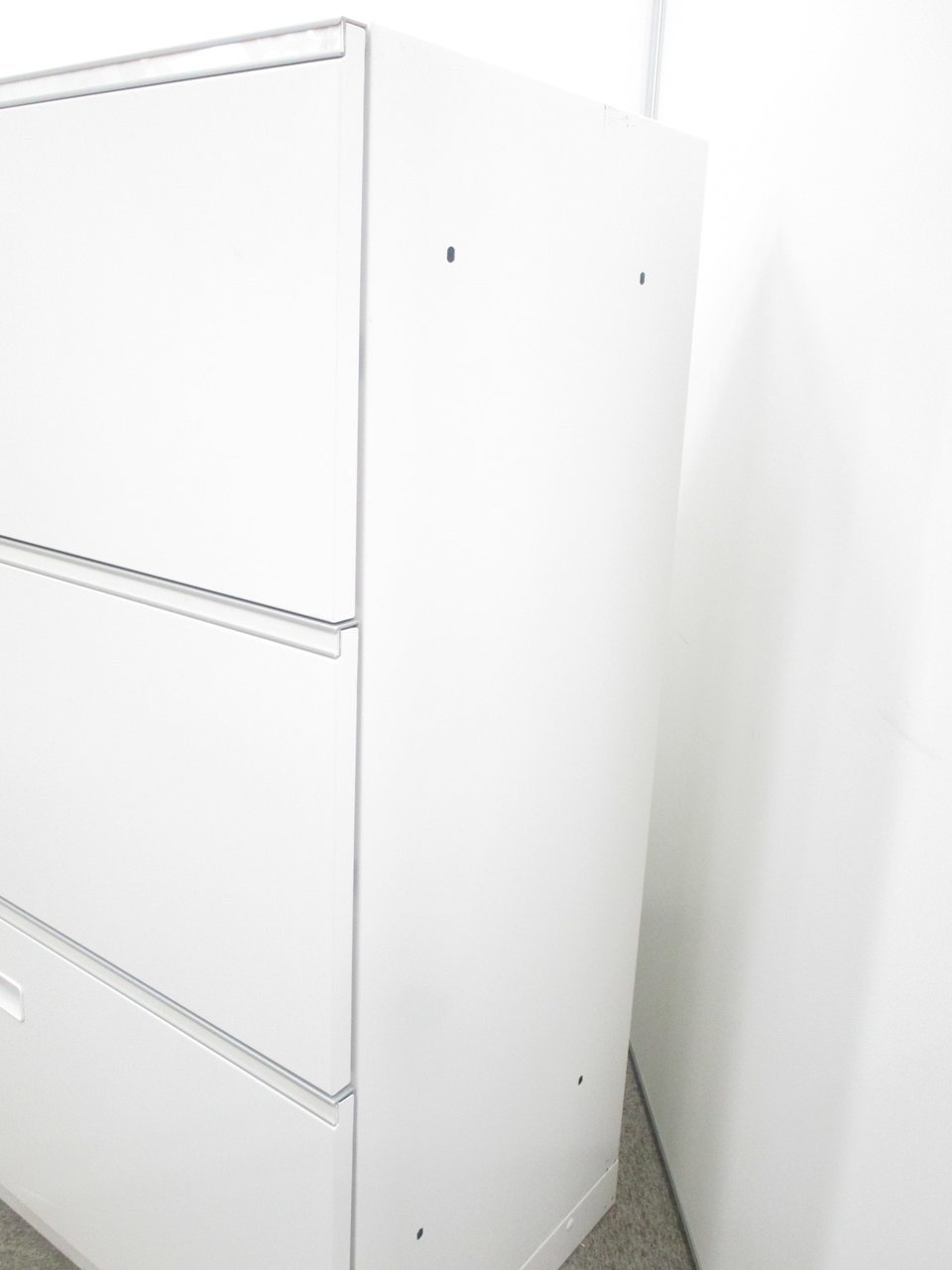 【A4ファイルも沢山収納可能!ホワイトカラーの人気シリーズ3段ラテラル書庫!】/オススメ(おすすめ) /人気商品【弊社使用欄:A01013834】3段ラテラル書庫/ローキャビネット/天板付き/ホワイト/シリンダー錠/ITOKI/THIN LINE■イトーキ/シンライン※取っ手部分日焼あり