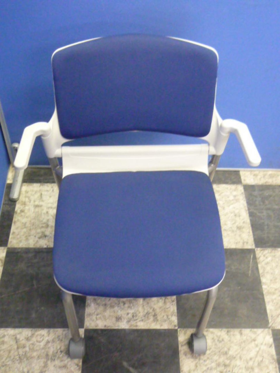 【残り2脚の為、お安く!】【キャスター付きで使いやすい!ミーティングに最適!】■ウチダ(UCHIDA)製 MF-180シリーズ スタッキングチェア ミーティングチェア ■キャスター付き ■レイズンブルー×ホワイトシェル