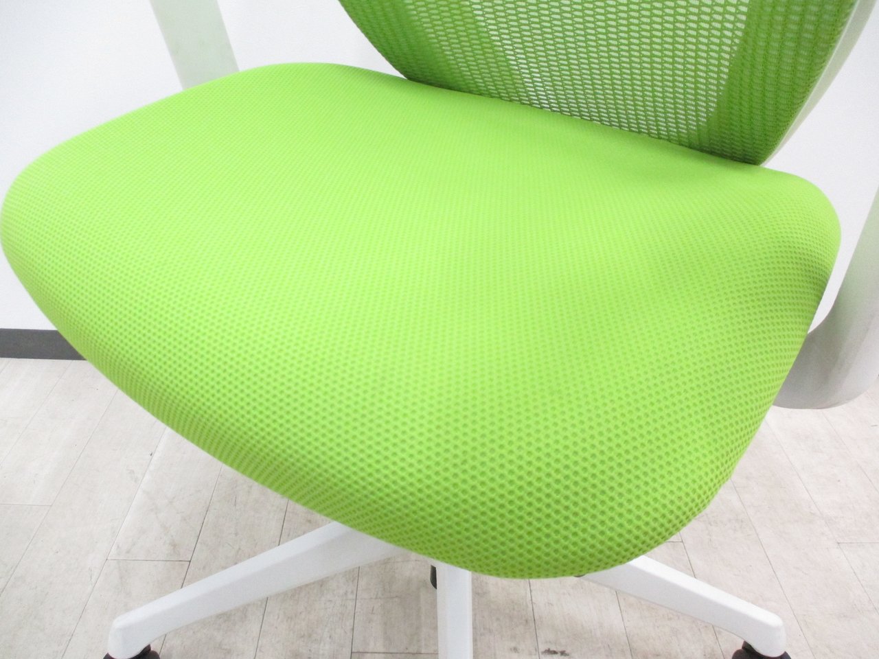 三次元曲面が身体にフィット!前傾チルト機能付き大人気メッシュチェア!清潔感と爽快感のある明るいグリーン×ホワイトフレーム仕様! ■オカムラ/シルフィーチェア(Sylphy)/ライムグリーン 肘付き ハイバック 背面メッシュ 可動肘