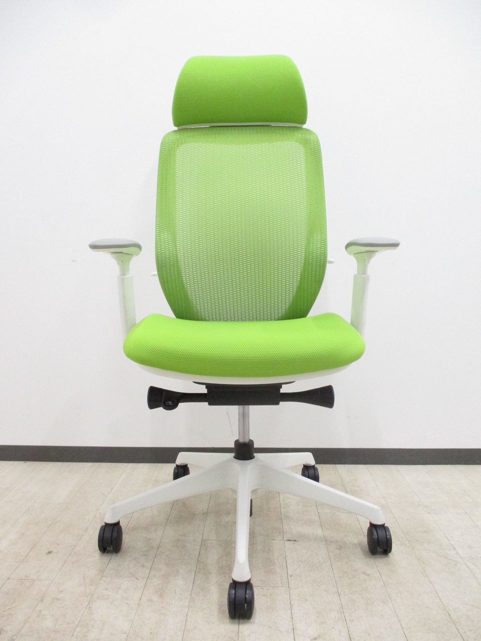 【前傾チルト機能付き!オカムラ製品で最も人気を集める高機能メッシュチェア!】■オカムラ(okamura)製 シルフィ(Sylphy)チェア ハイバック 肘付き ■可動肘 ■ヘッドレスト付き ■ライムグリーン × ホワイトシェル ※実際の商品はヘッドレスト部分のみブラックカラーとなります。