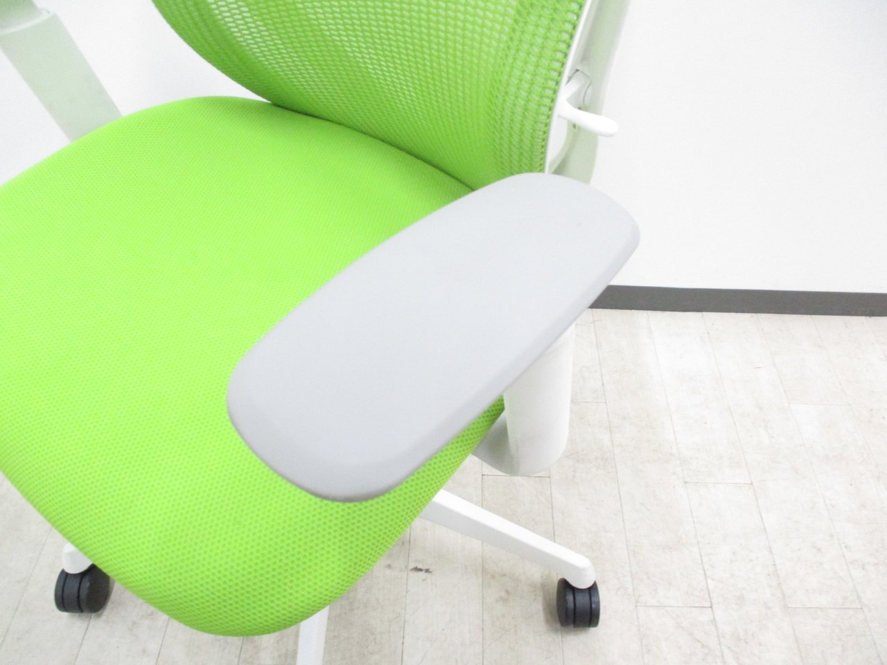 【前傾チルト機能付き!オカムラ製品で最も人気を集める高機能メッシュチェア!】■オカムラ(okamura)製 シルフィ(Sylphy)チェア ハイバック 肘付き ■可動肘 ■ライムグリーン × ホワイトシェル【状態良好品!】