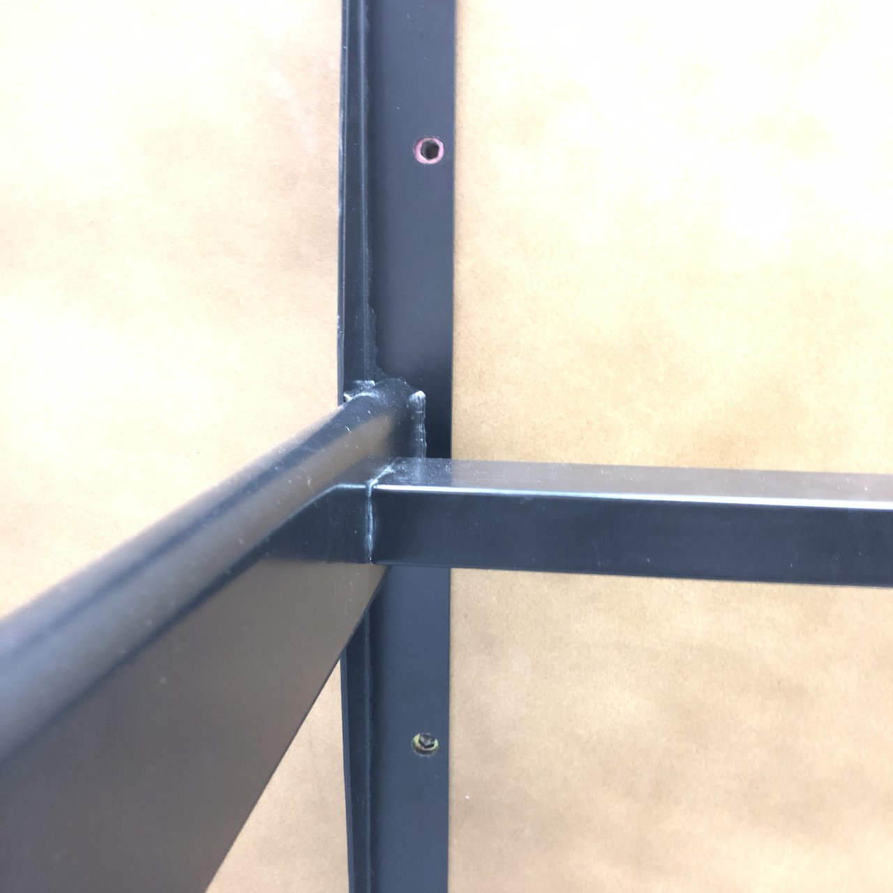 - 目立つ箇所あり傷・凹みが多数、深い傷・凹みが一部ある。(例、天板、幕板、棚板、サイド部分、脚部等にある。)