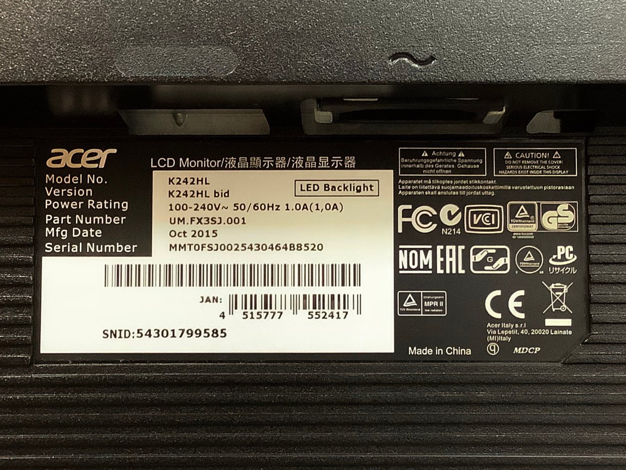 Full HD 1920x1080モード対応 24インチワイド液晶ディスプレイ ◆acer ◆K242HL- 横浜本店