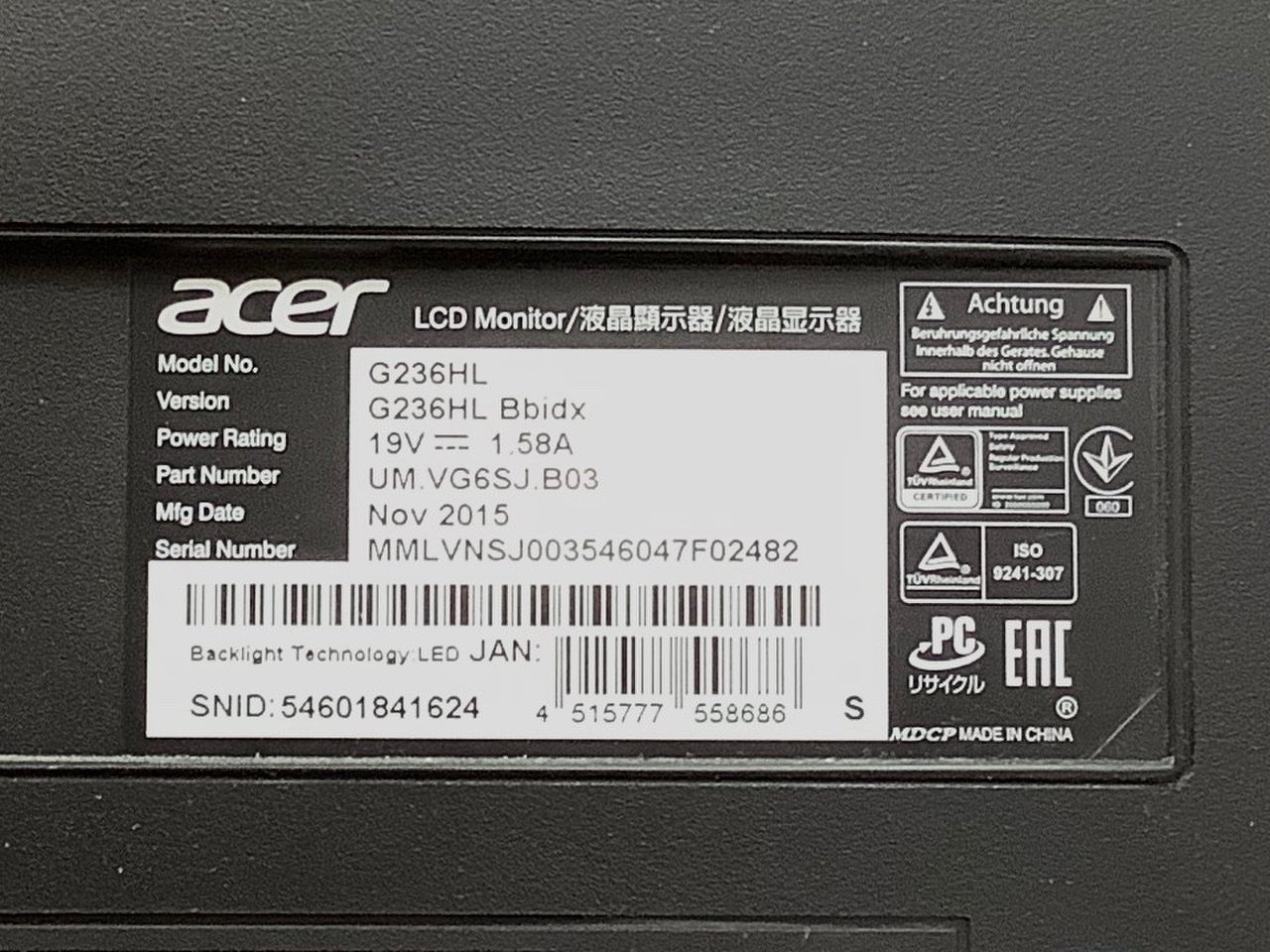 Full HD 1920x1080モード対応 23インチワイド液晶ディスプレイ ◆acer ◆G236HL- 横浜本店