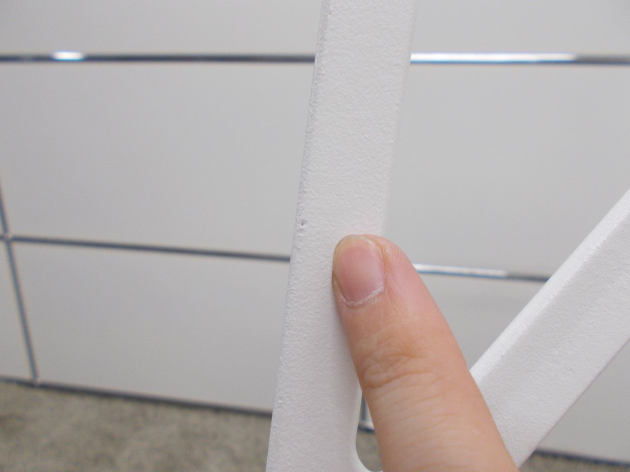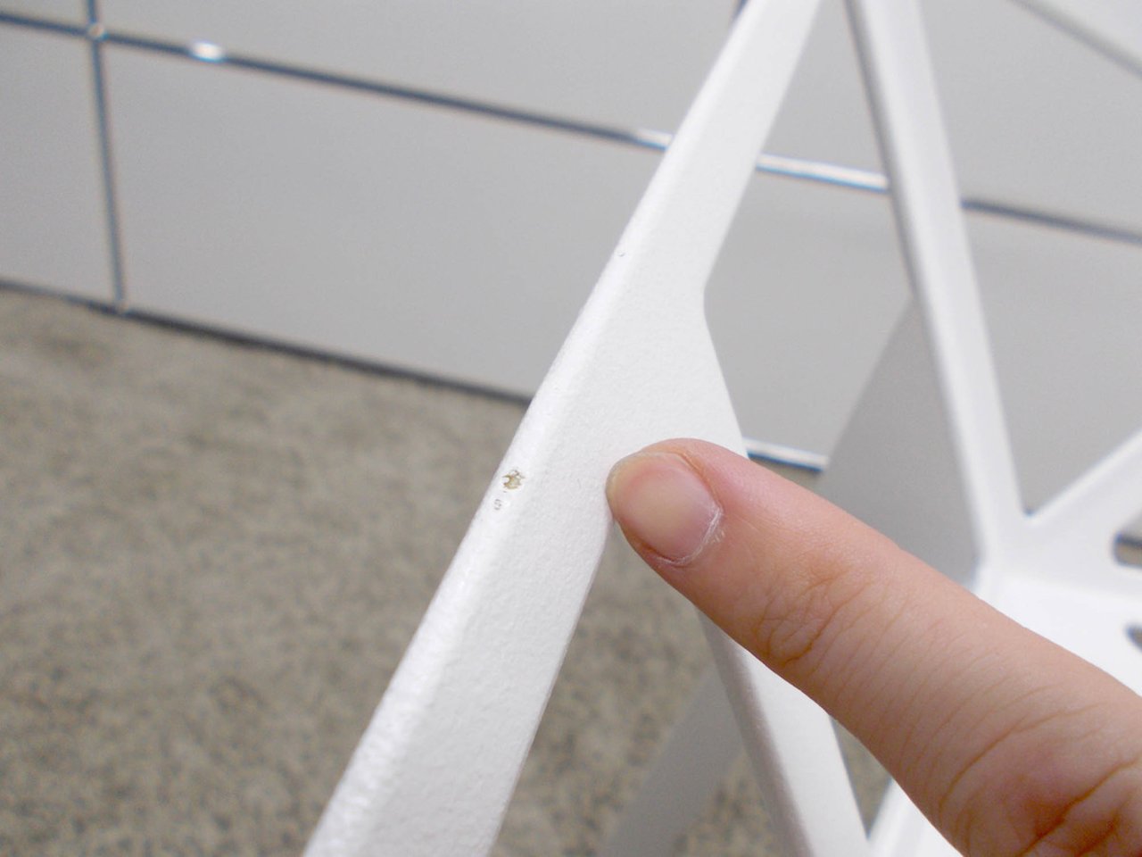 - かなり強い濃い黄ばみ・変色が商品全体にある。(例、座面・背もたれ、脚部等にある。)