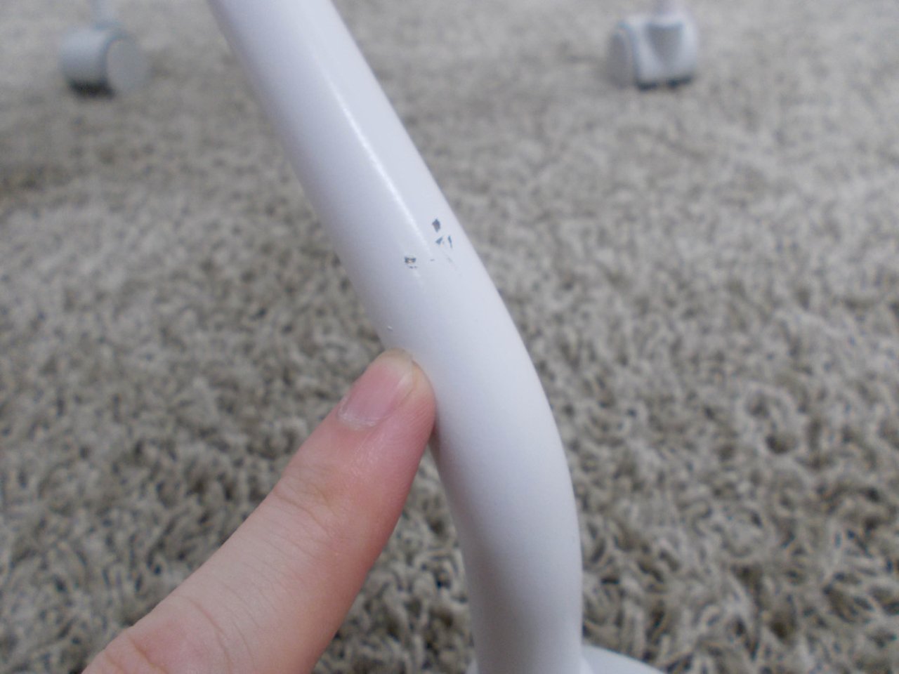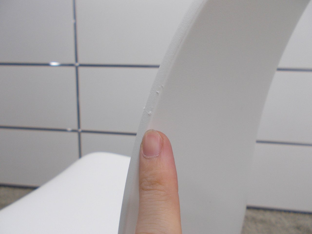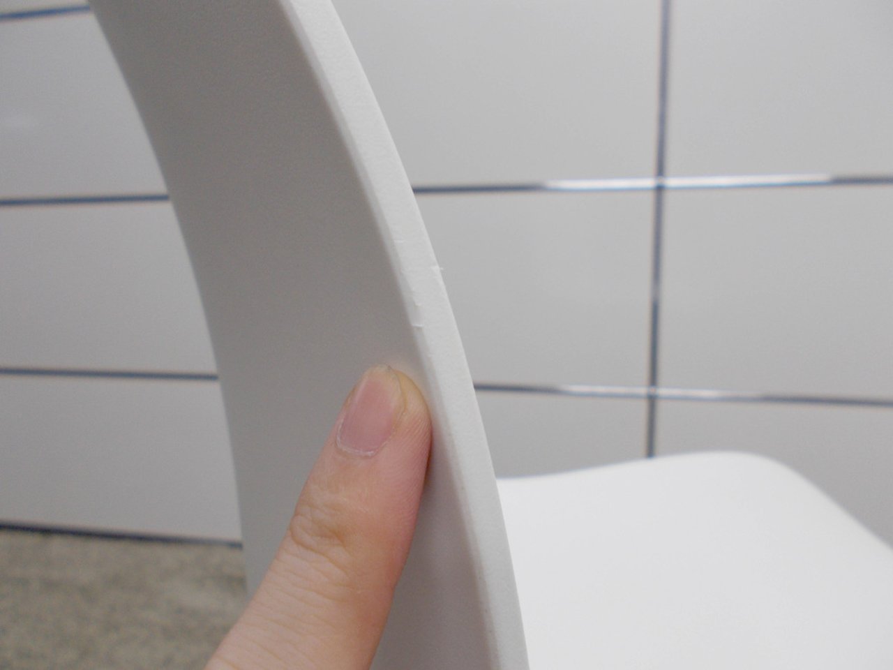 - かなり強い濃い黄ばみ・変色が商品全体にある。(例、座面・背もたれ、脚部等にある。)