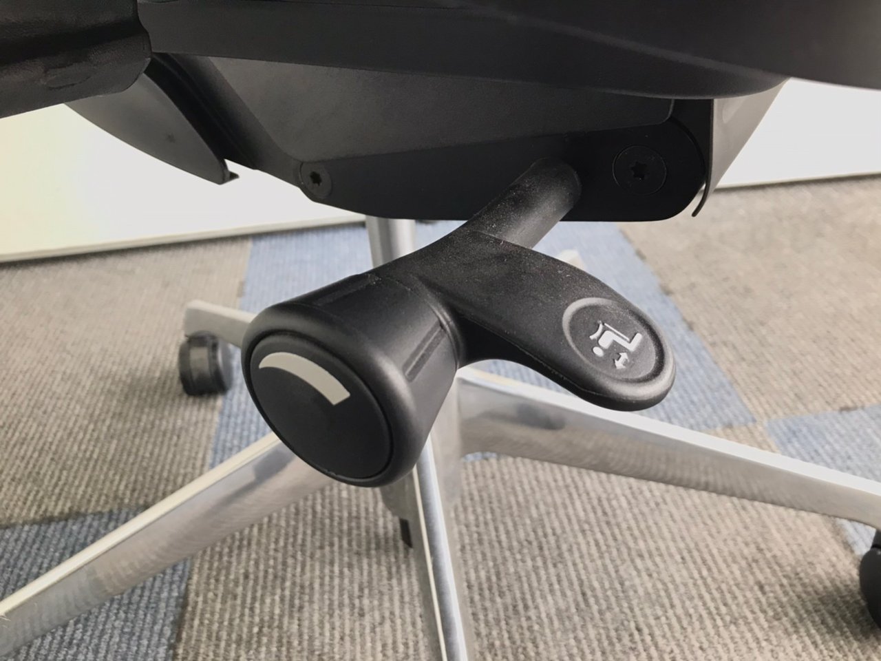 - 座面右下のダイヤル操作で、リクライニングの強弱調整が行えます。これまでのダイヤル式よりも、少ない回転数で、最弱?最強の調整が可能です。