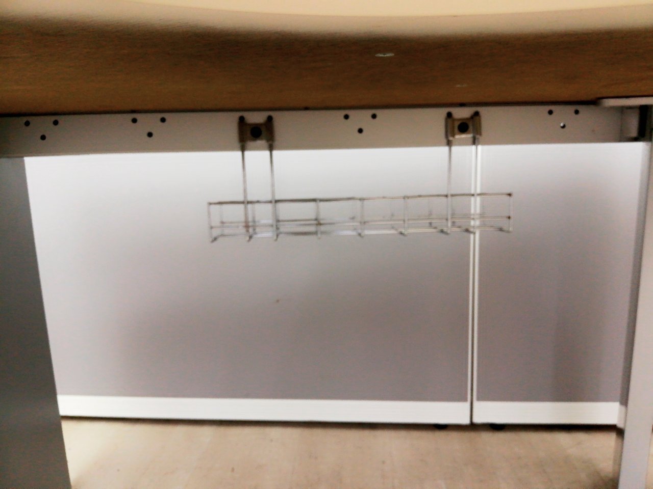 この形は書類や荷物を広げて作業を行う際に使い易いデスクです。