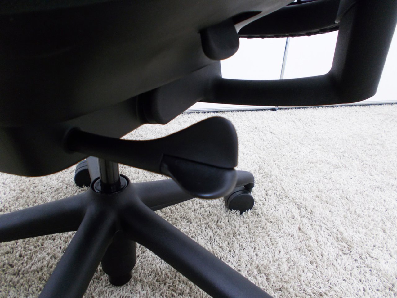 - 座ったまま、レバー操作一つで、簡単に座面を前傾できます。前傾姿勢を取ることが多いデスクワーカーに最適です。