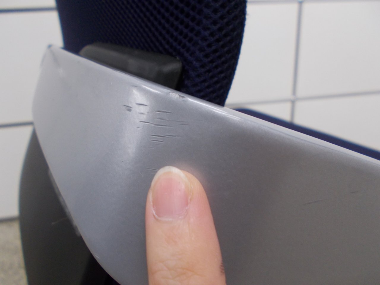 - 目立つ箇所あり傷・破れ・ほつれ・へたり・しわが多数または深い傷・破れ・ほつれ・へたり・しわが一部ある。※座面・背もたれ、シェル、脚部等にある。