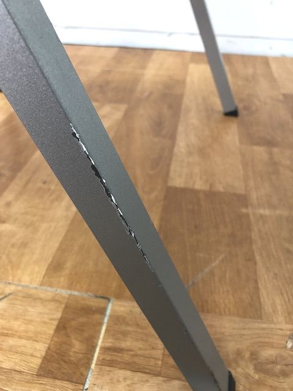- かなり強い濃い黄ばみ・変色が商品全体にある。(例、座面・背もたれ、脚部等にある。)