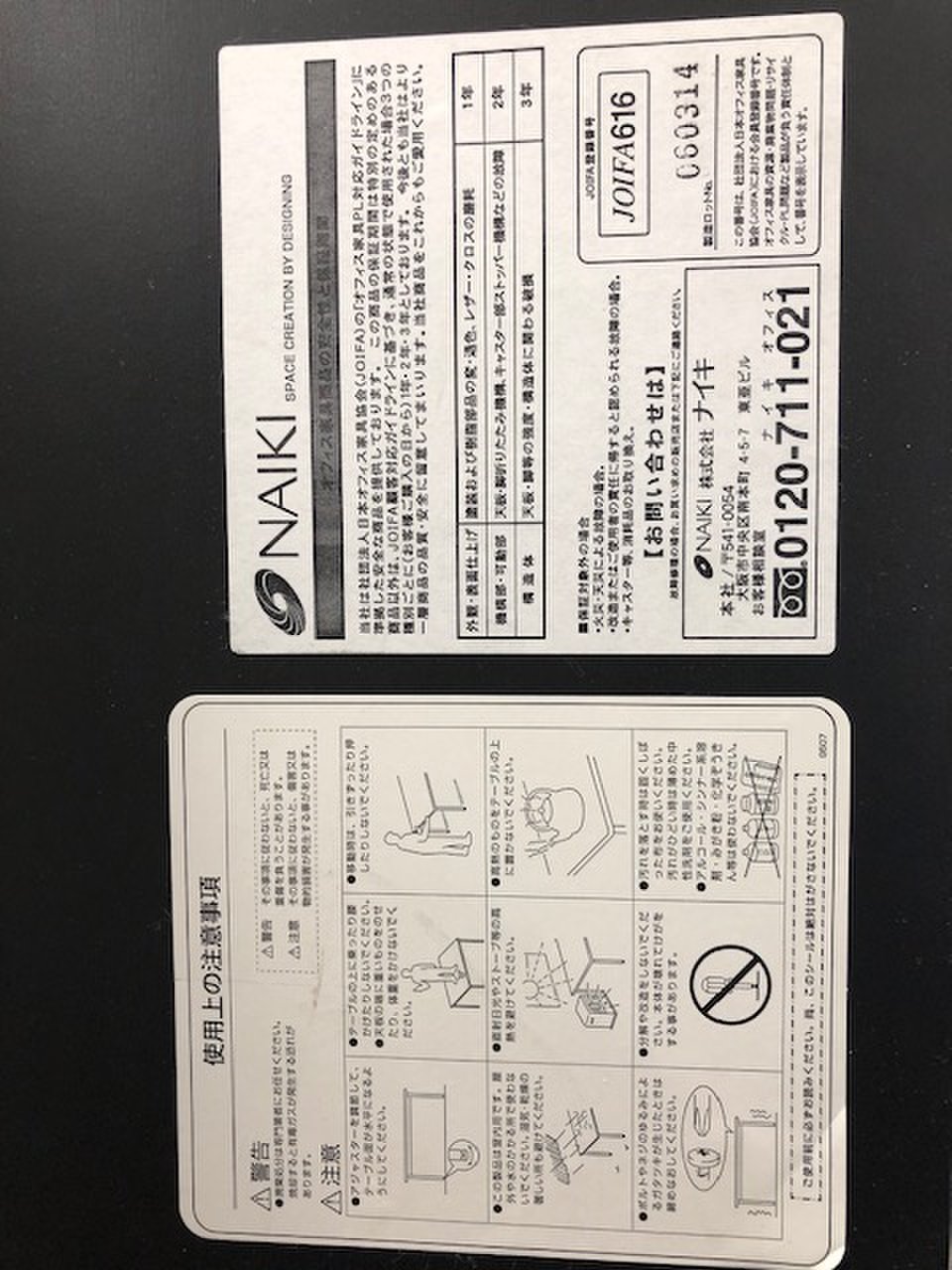 - 一部不具合あり天板歪み、アジャスター無し、キャスター使用不可ようなそのテーブルの本来の効用を果たすための機能以外の一部が使用不可な状態。(例、キャスターロッ ク機能使用不可、棚板無し等がある。)