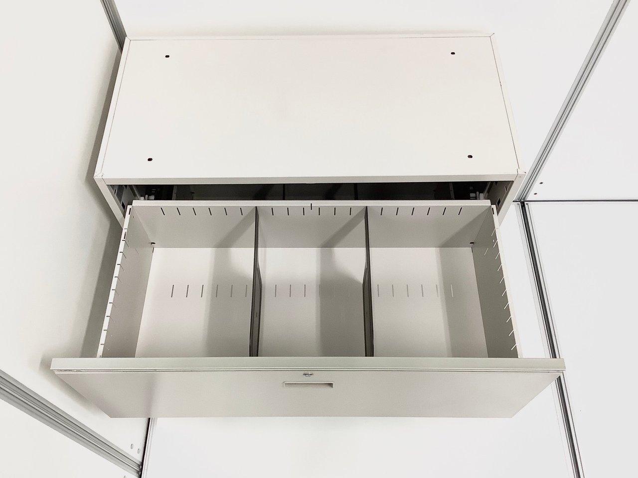 【4台限定在庫入替セール品】イトーキ製の定番書庫!人気の引き出し(ラテラル)タイプになります! イトーキ シンライン ホワイトグレー 3段ラテラル 天板付き
