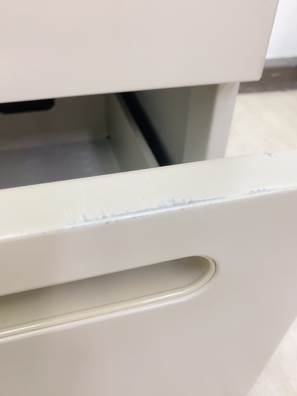 - あり黄ばみ・変色が広い範囲にうっすらある、または濃い黄ばみ・変色が一部ある。(例、天板、正面、背後、サイド部分にある。)
