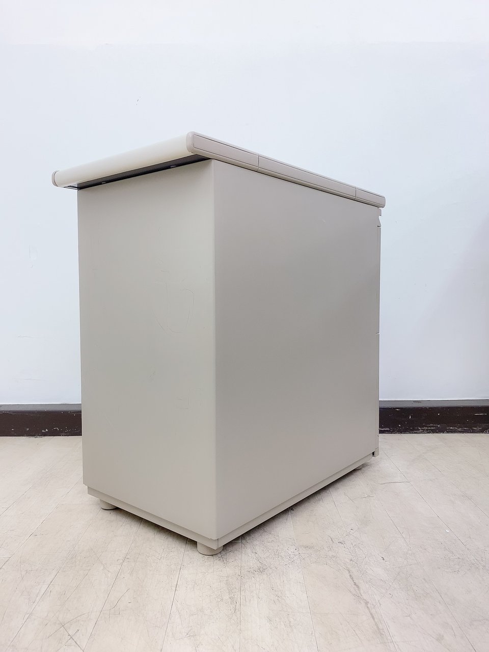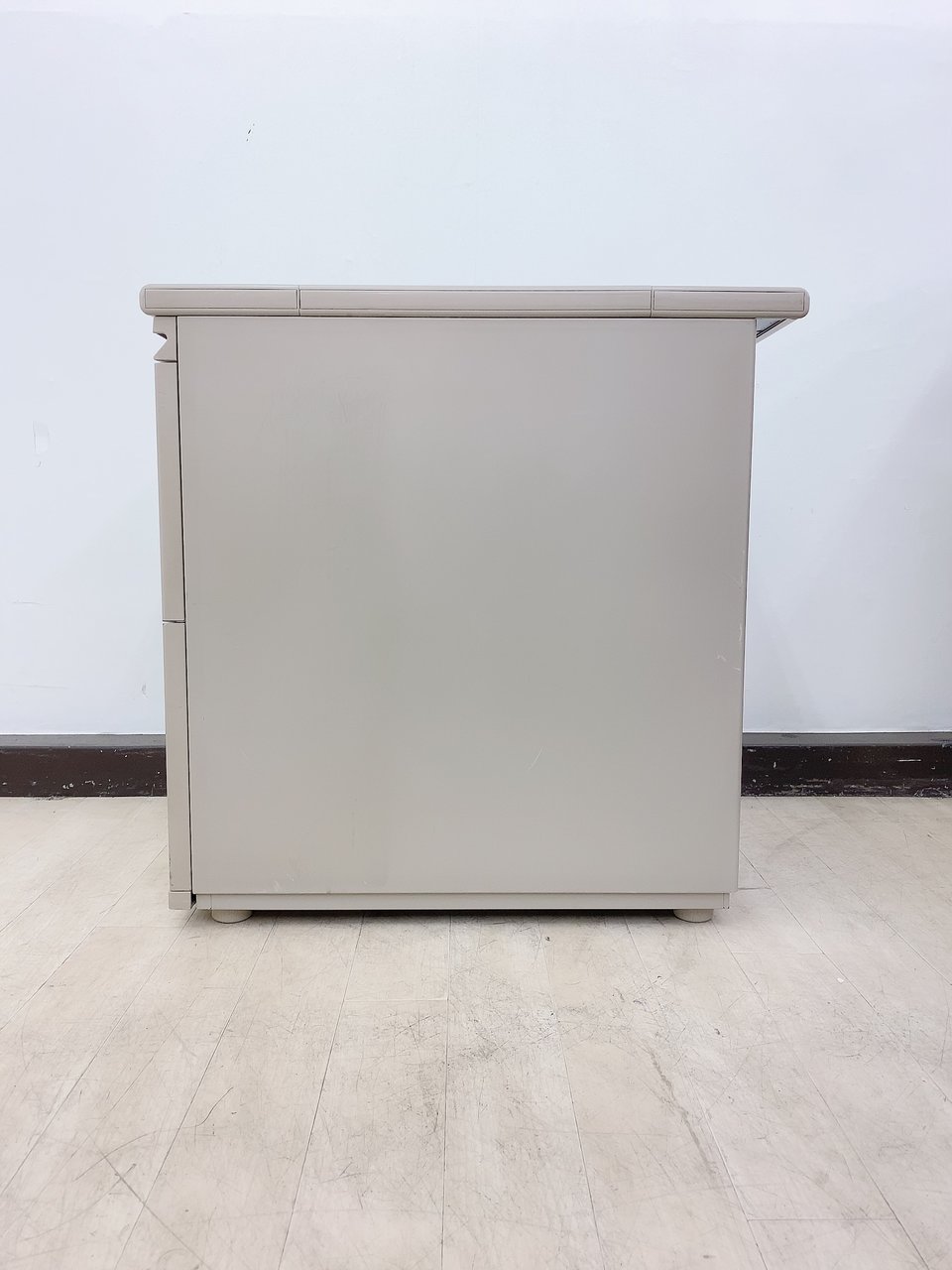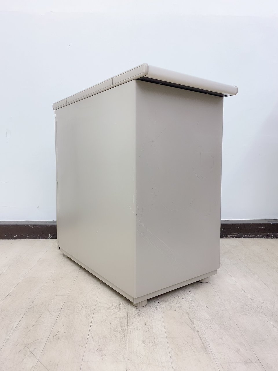 - かなり強い濃い黄ばみ・変色が商品全体にある。(例、天板、正面、背後、サイド部分にある。)