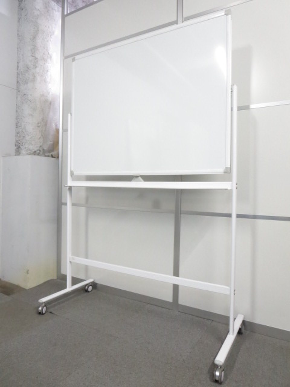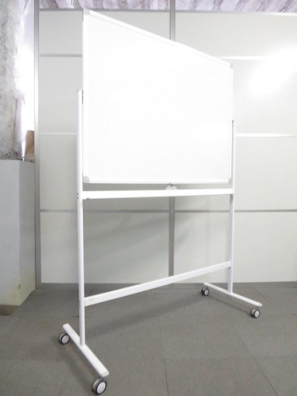 ■脚付ホワイトボード 板面サイズ:W1200×H900mm 両面タイプ キャスター付【中古品】- 川崎店